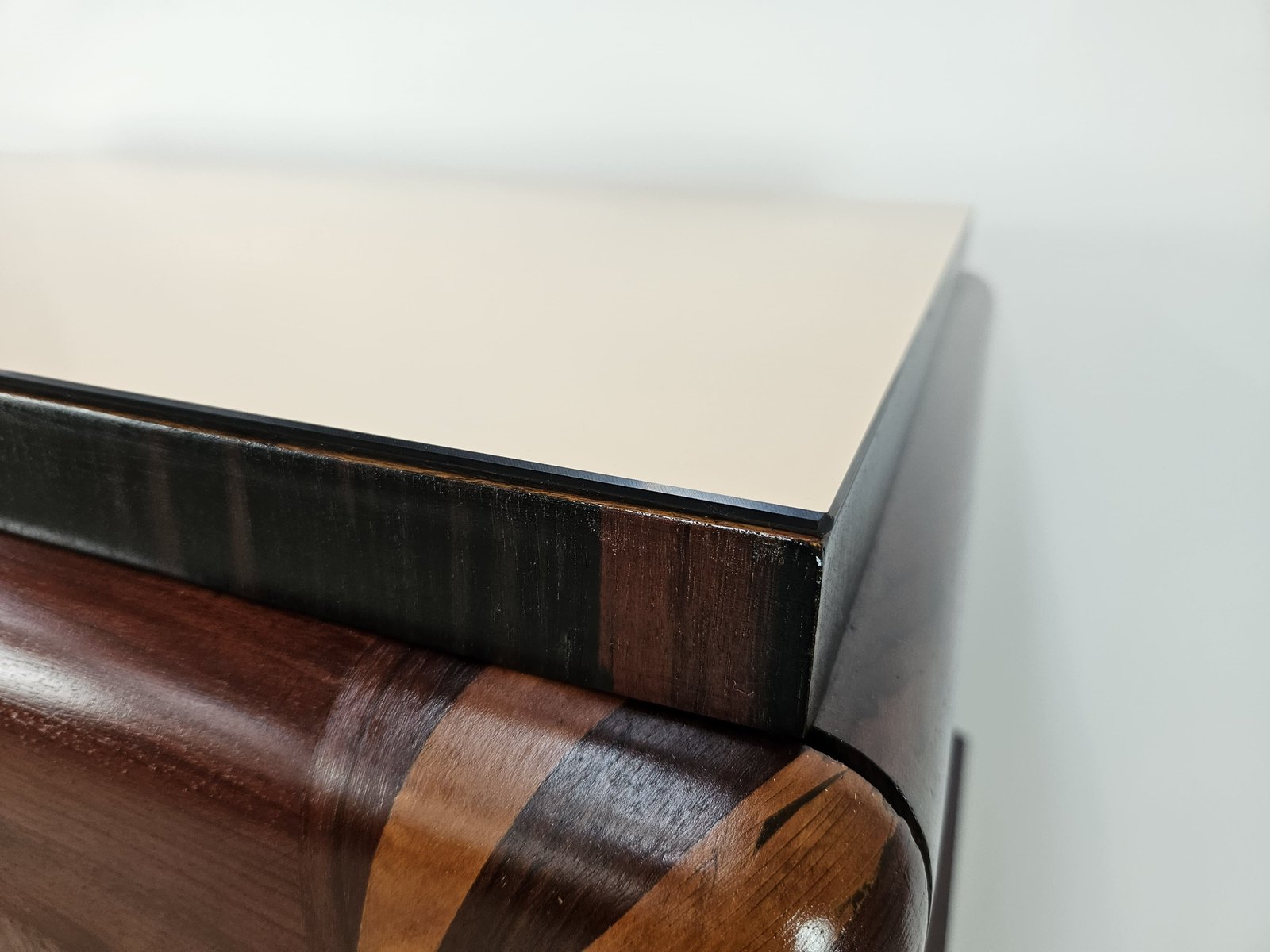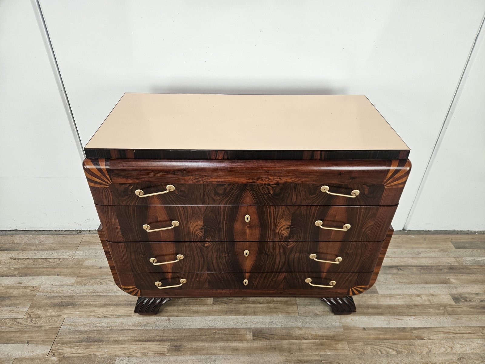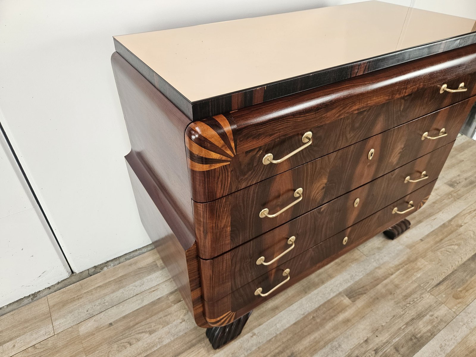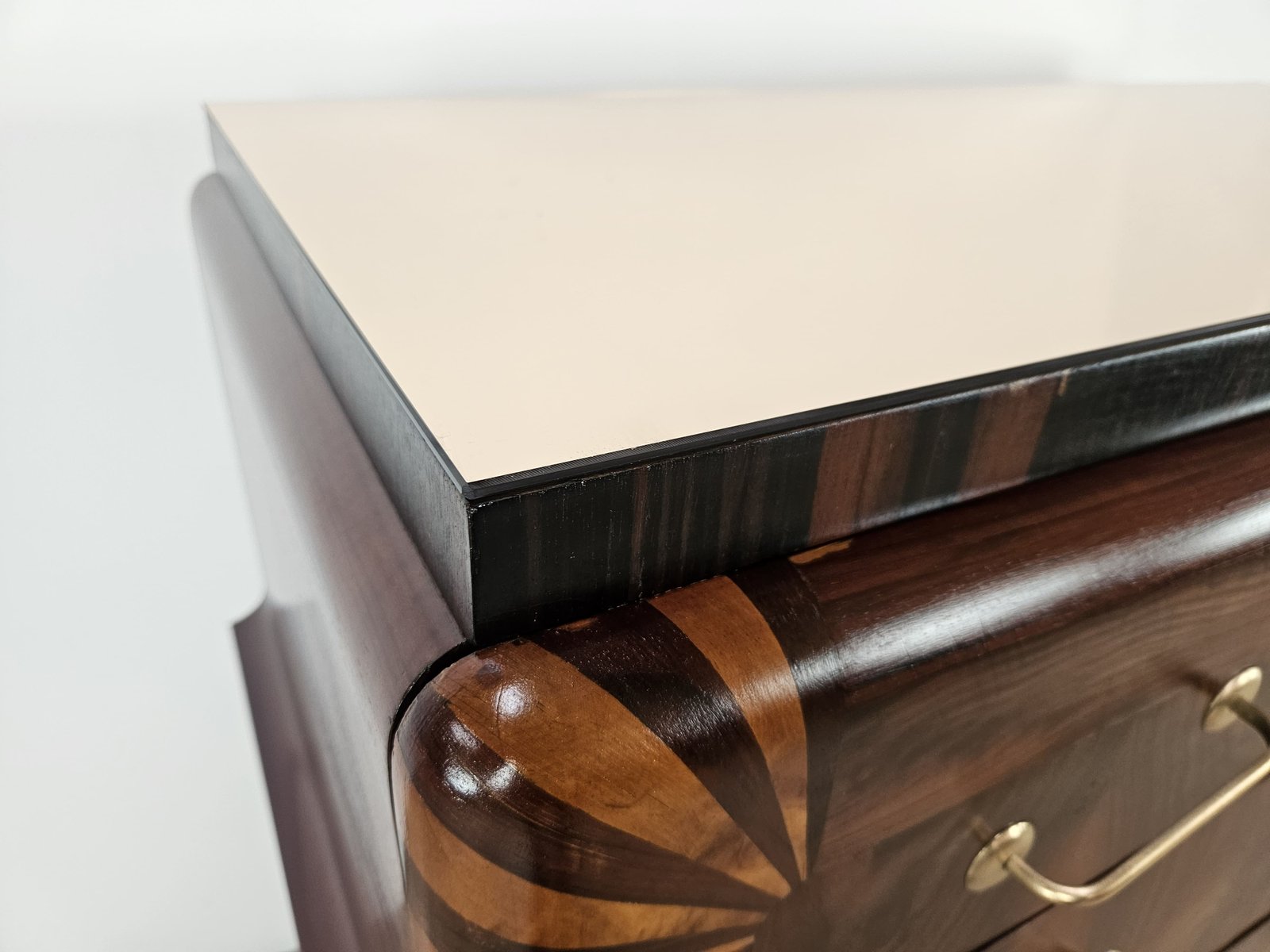 Art Deco Mahogany and Pink Maple Chest of Drawers with Mirror Top, 1940