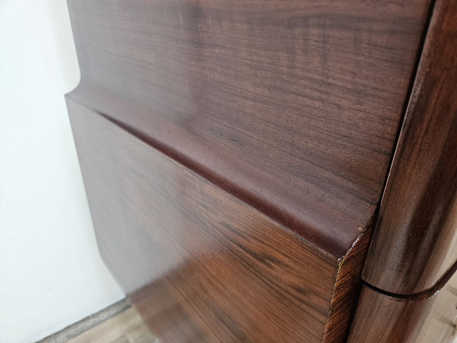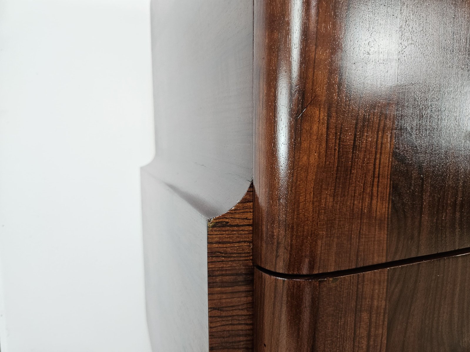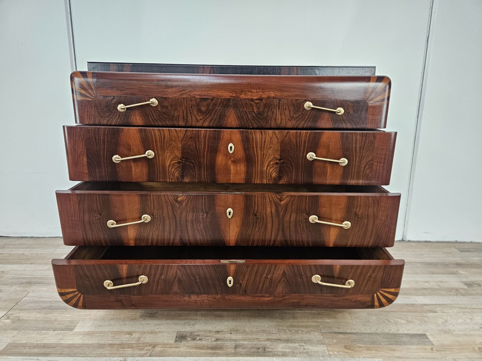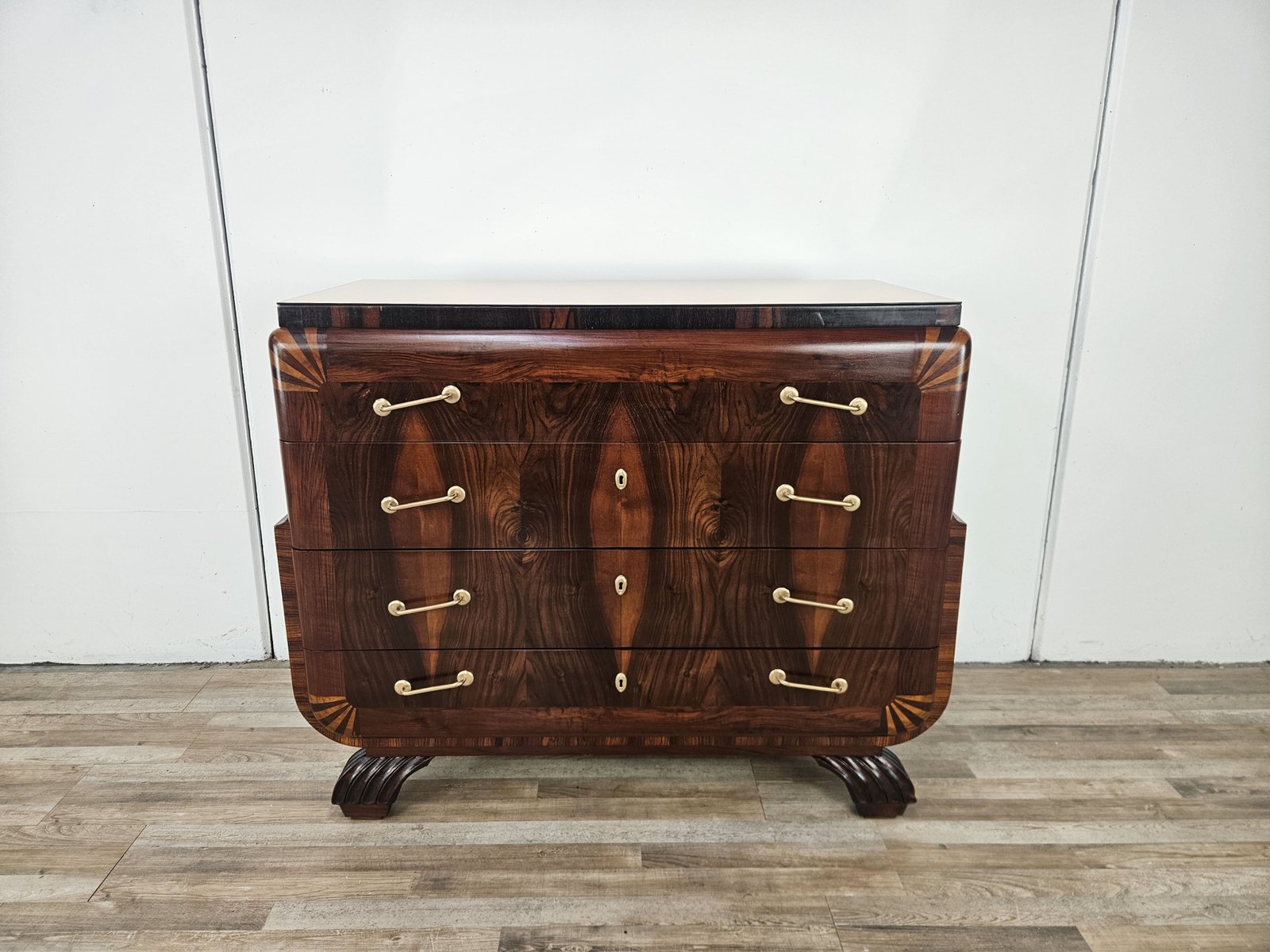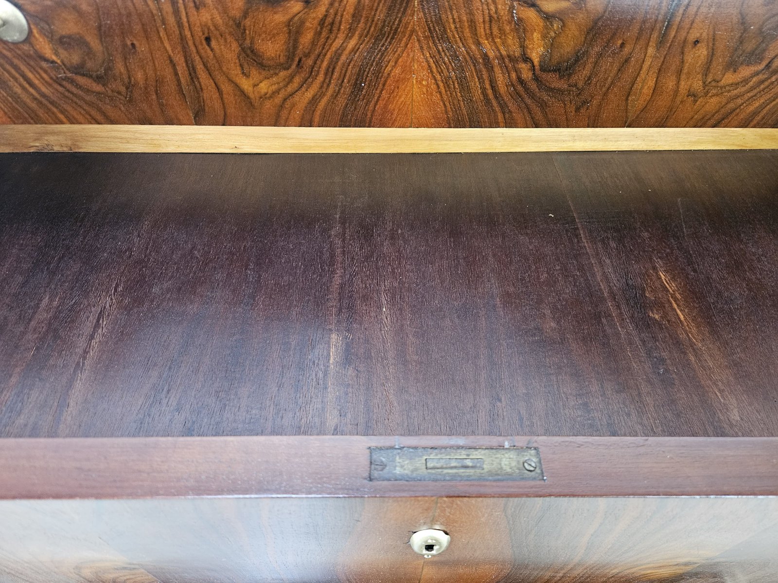 Art Deco Mahogany and Pink Maple Chest of Drawers with Mirror Top, 1940