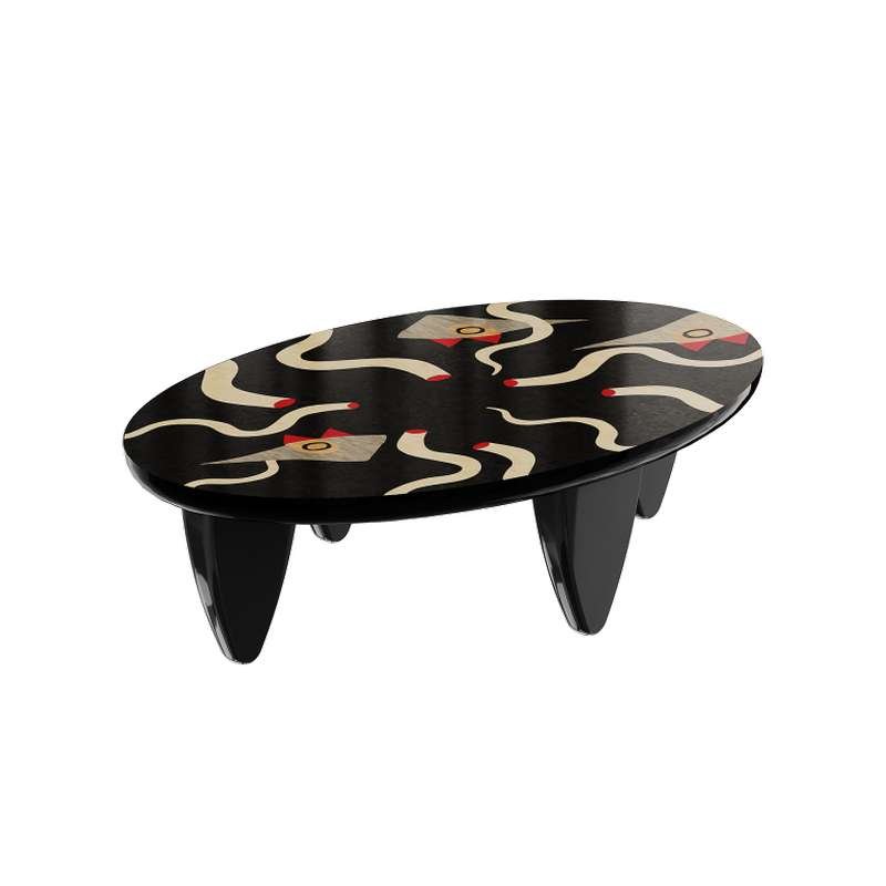 Birds Oval Center Table in Wood Abstract Print by Hommés Studio
