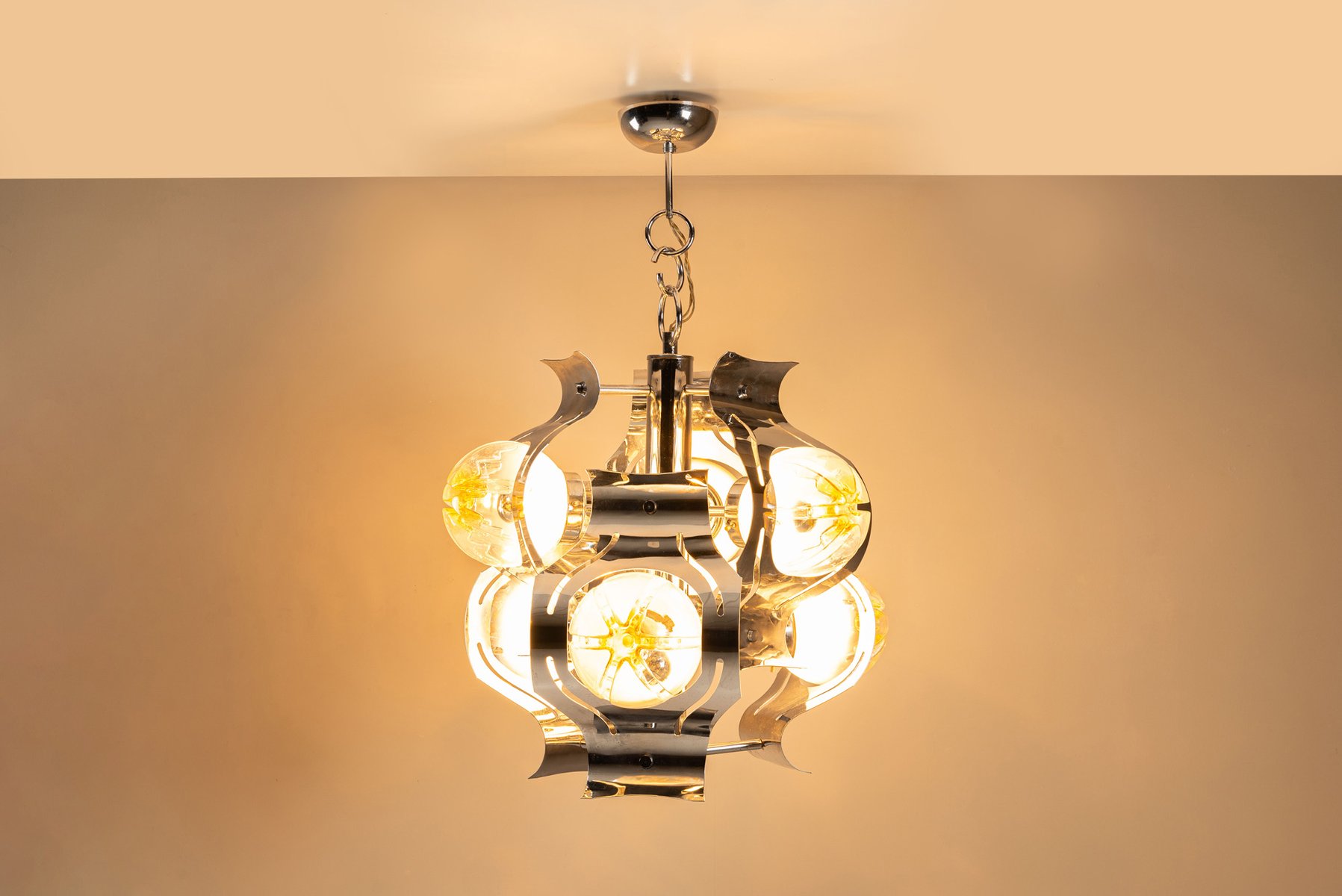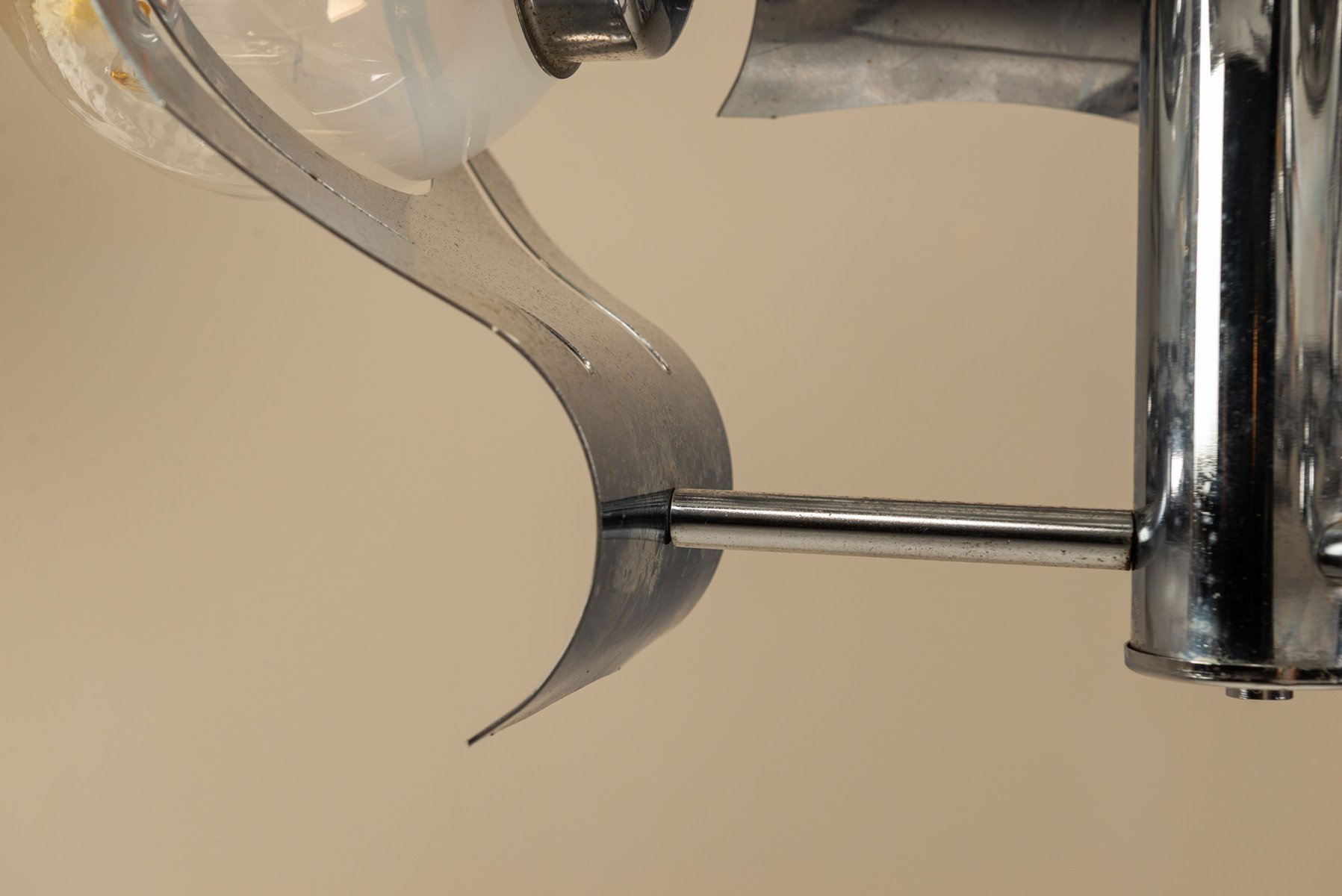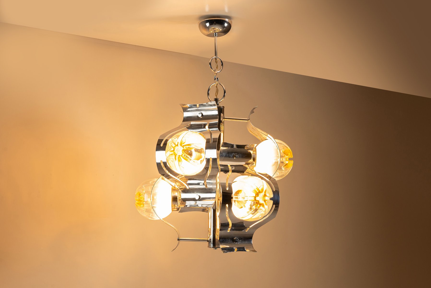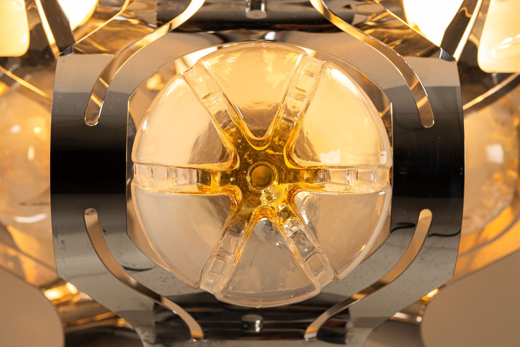 Chrome and Glass Ceiling Lamp attributed to Mazzega, Italy 1970s