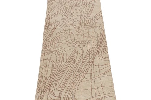 Distressed Style Abstract Runner in Beige-Brown Geometric Pattern by Rug&Kilim