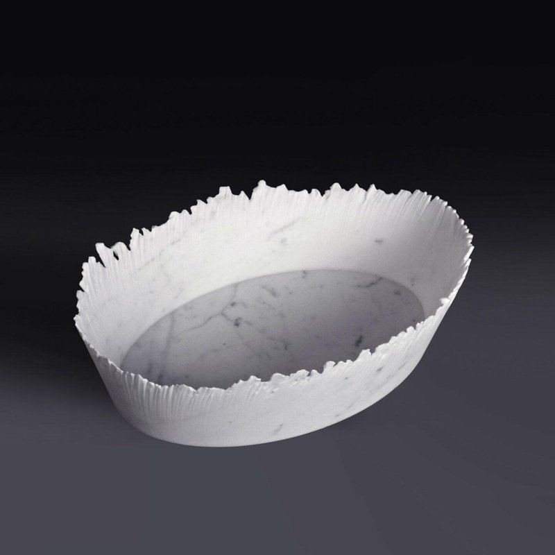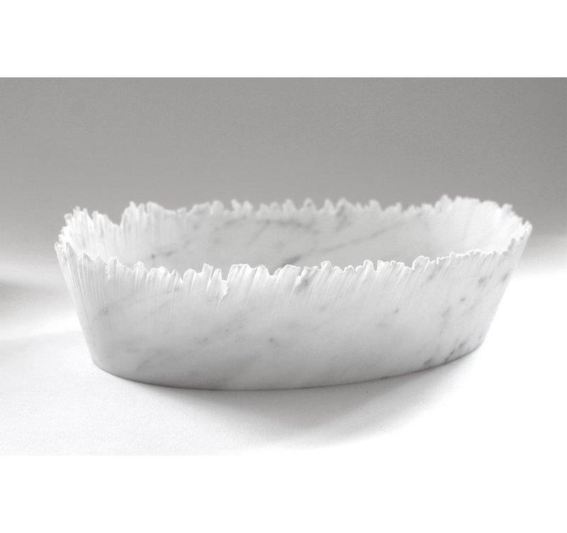 Drap A Oval Decorative Bowl in White Carrara Marble by Bufalini Marmi