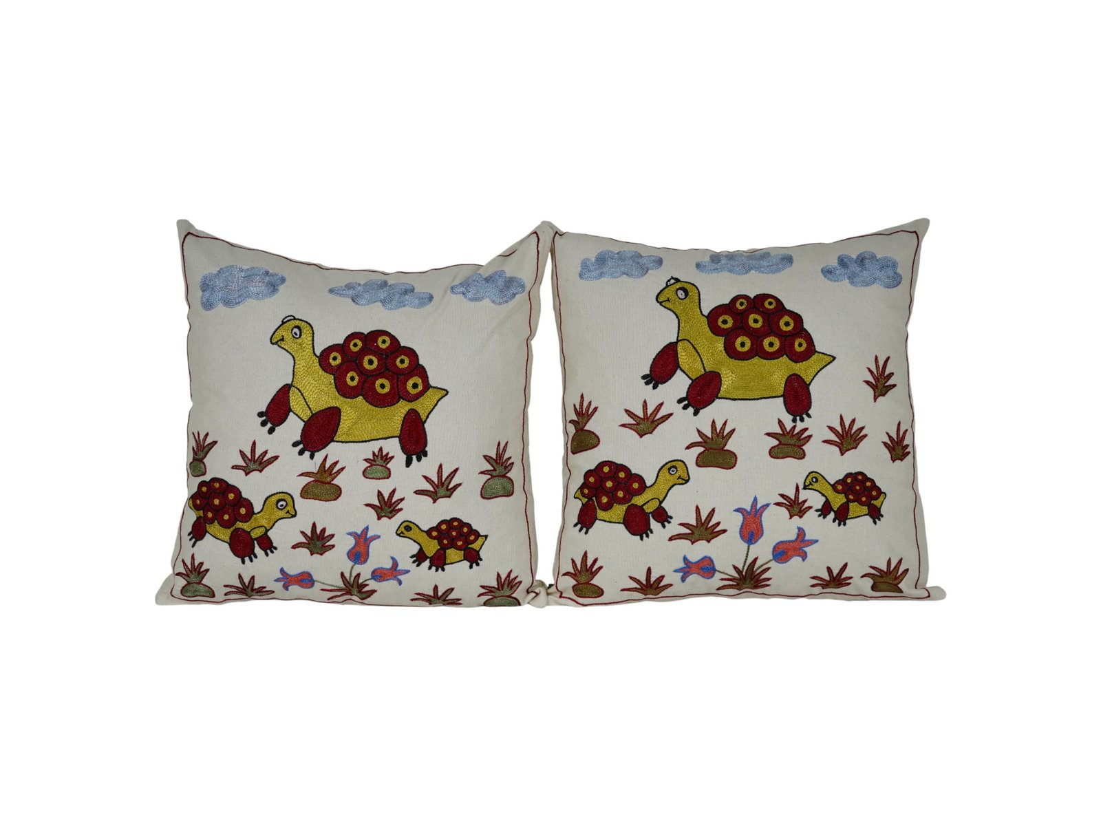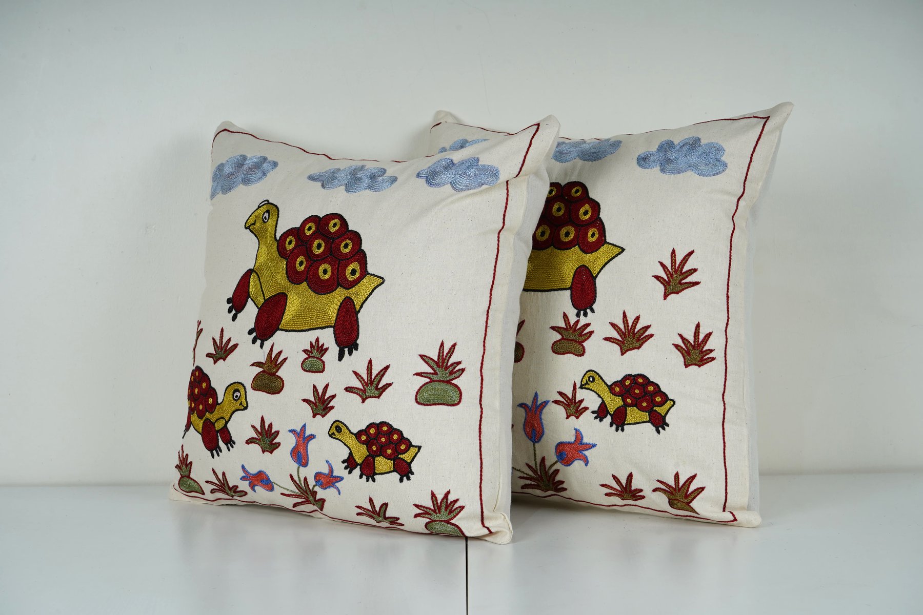 Embroidered Turtle Cushion Covers, 2010s, Set of 2
