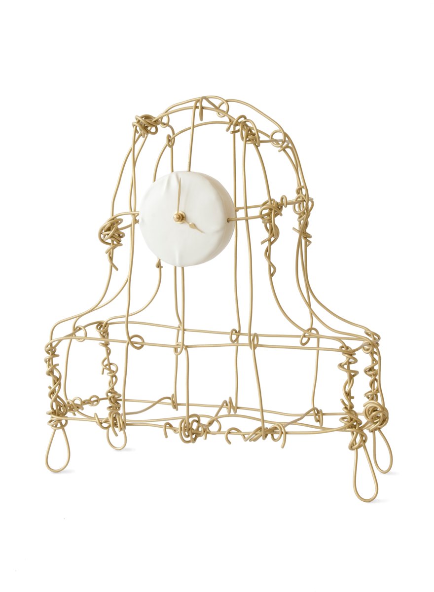Floating Frame Blasted Brass Mantel Clock by Kiki Van Eijk & Joost Van Bleiswijk