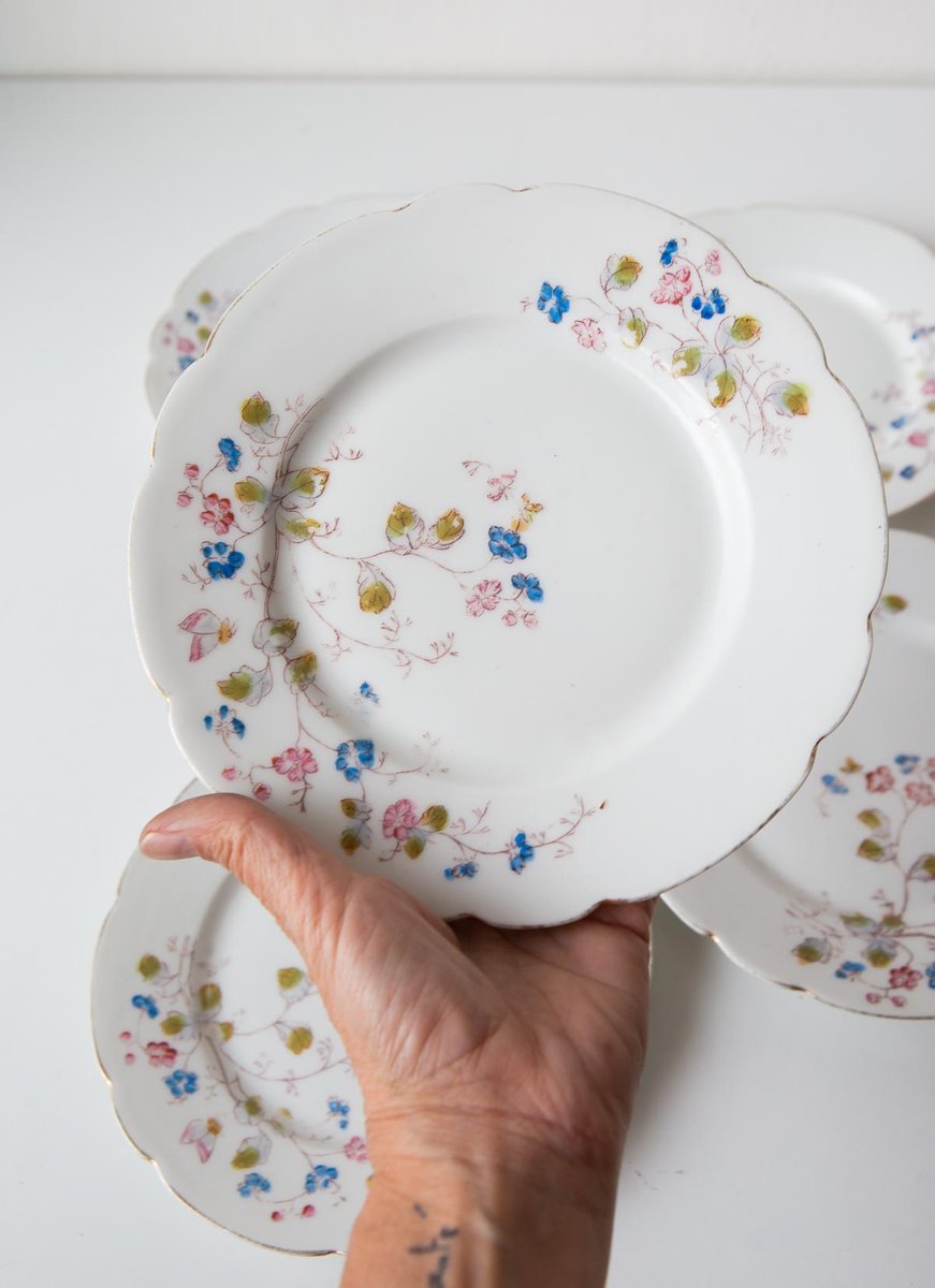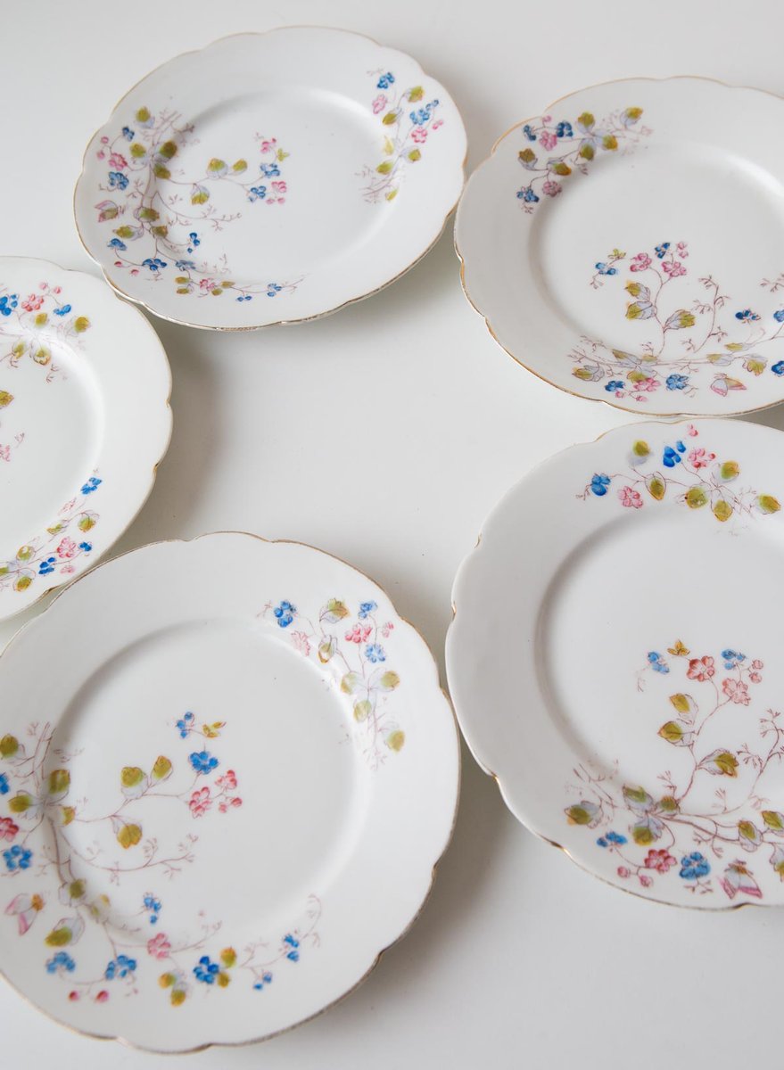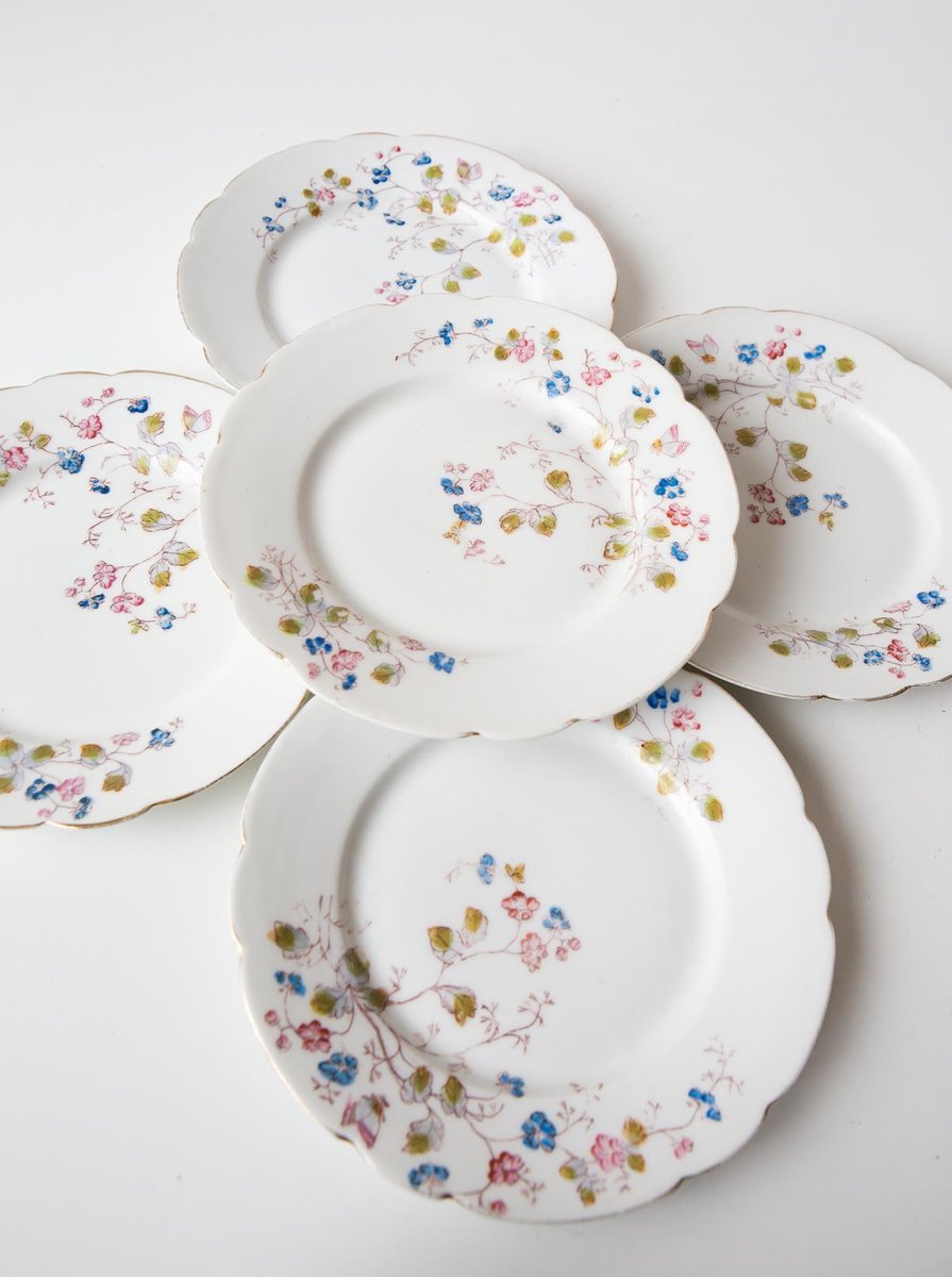 French Vieux Paris Hand Painted Dessert Plates from Befos, Set of 5