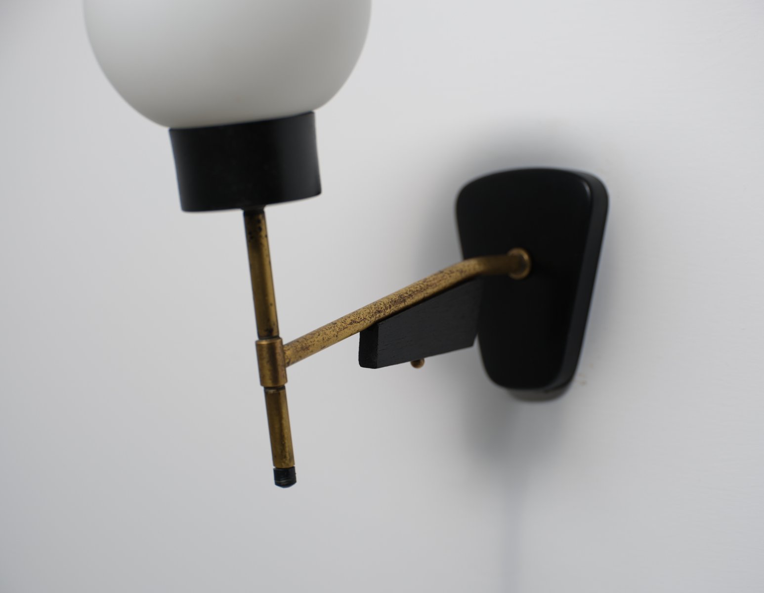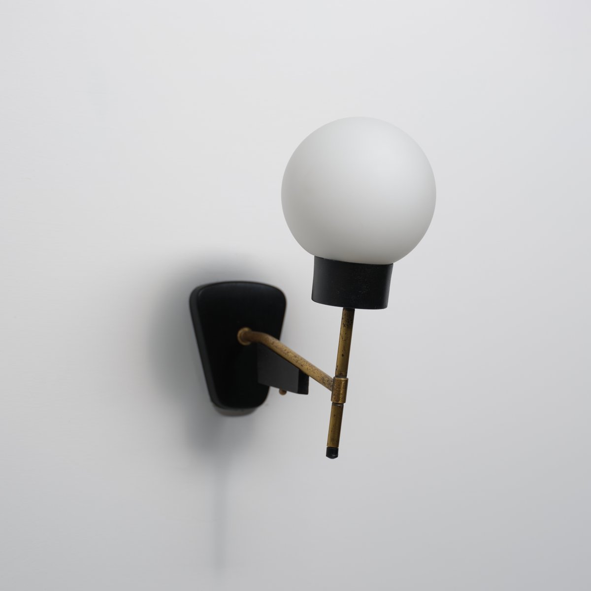 Italian Brass Wall Sconce with Opaline Glass Shade, 1950s