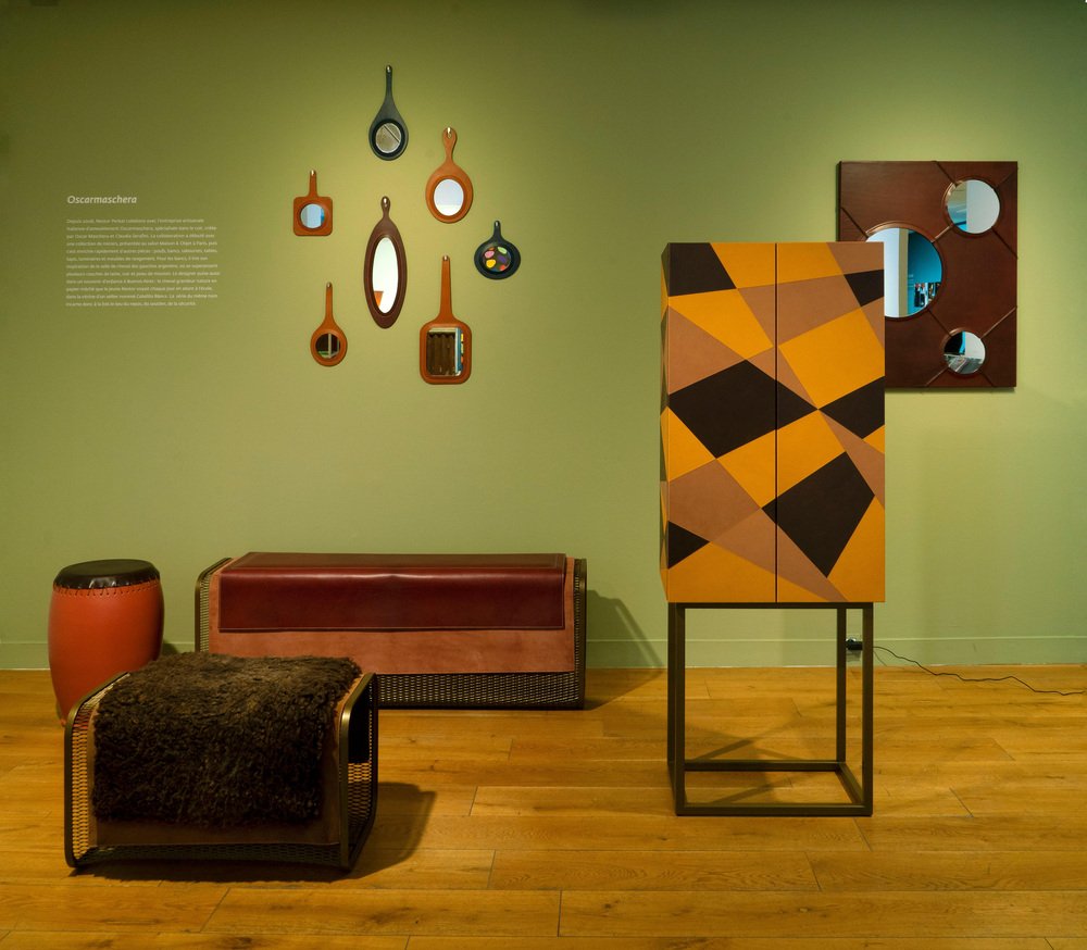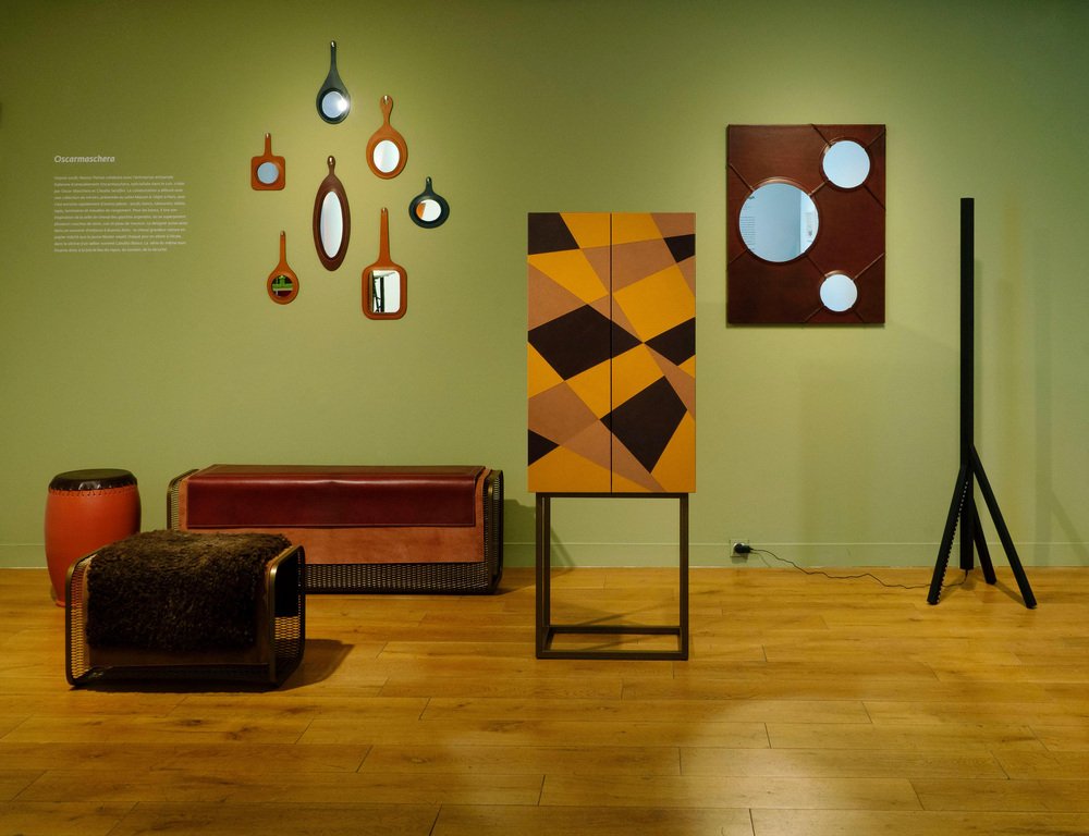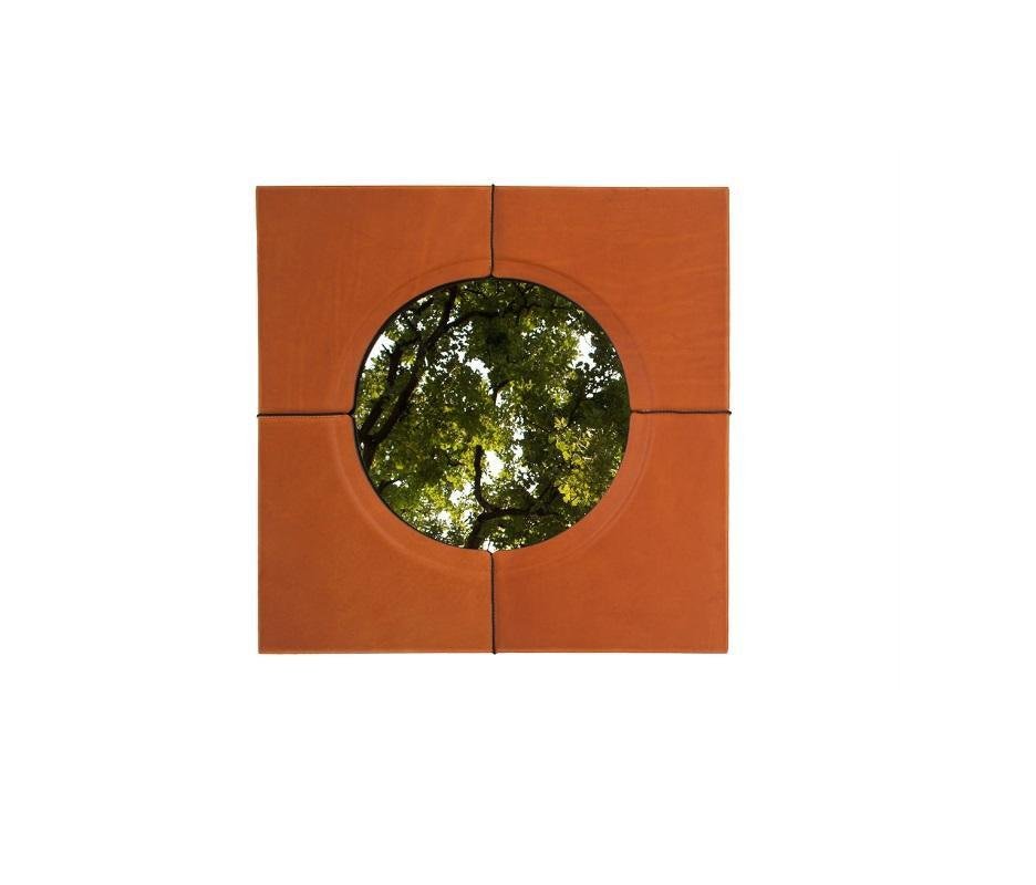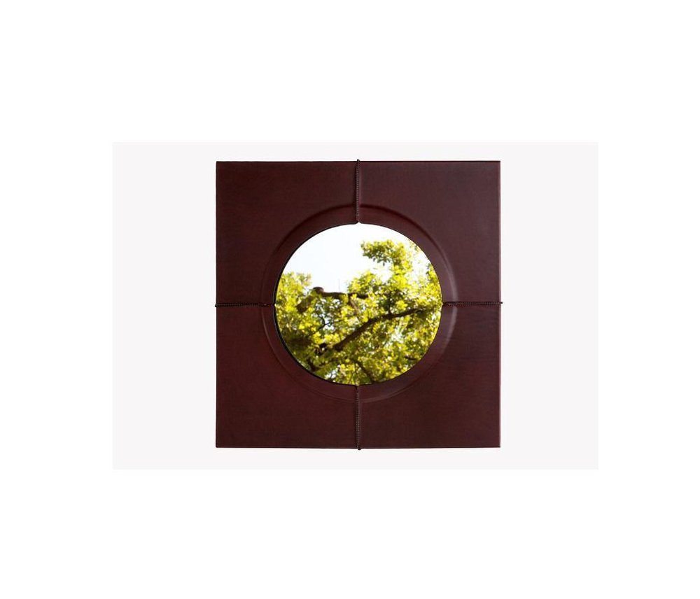 Just Another Day Square Wall Mirror with Faux Leather Frame by Oscar Maschera