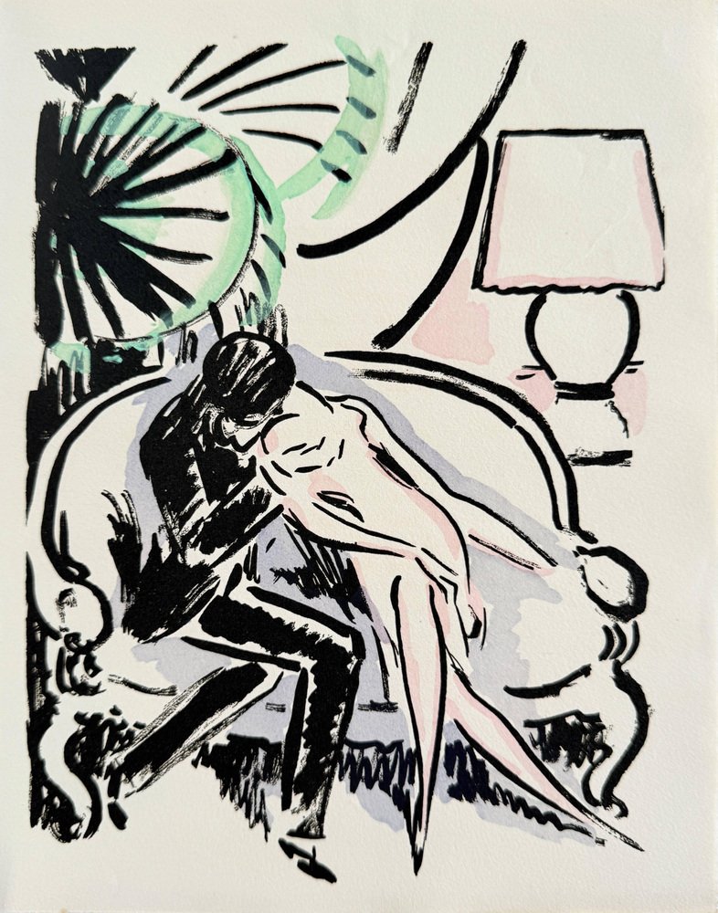 Marc Chagall, Clown in Love with Nude, 1960, Lithograph