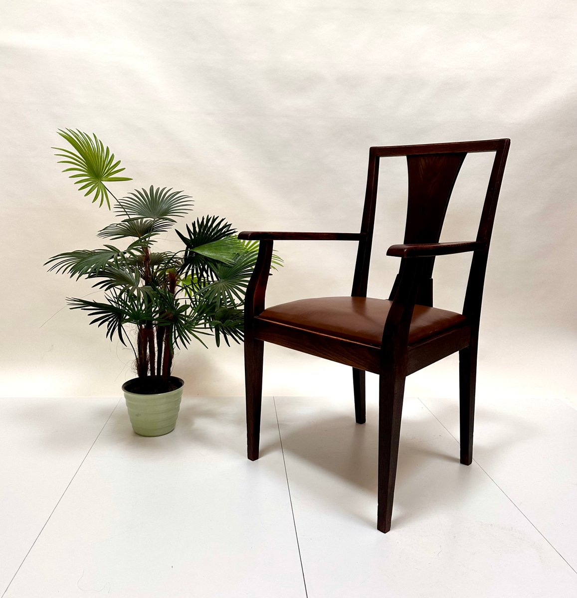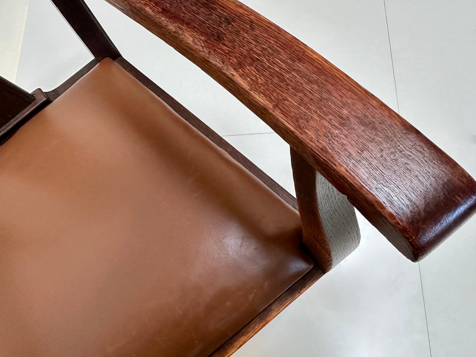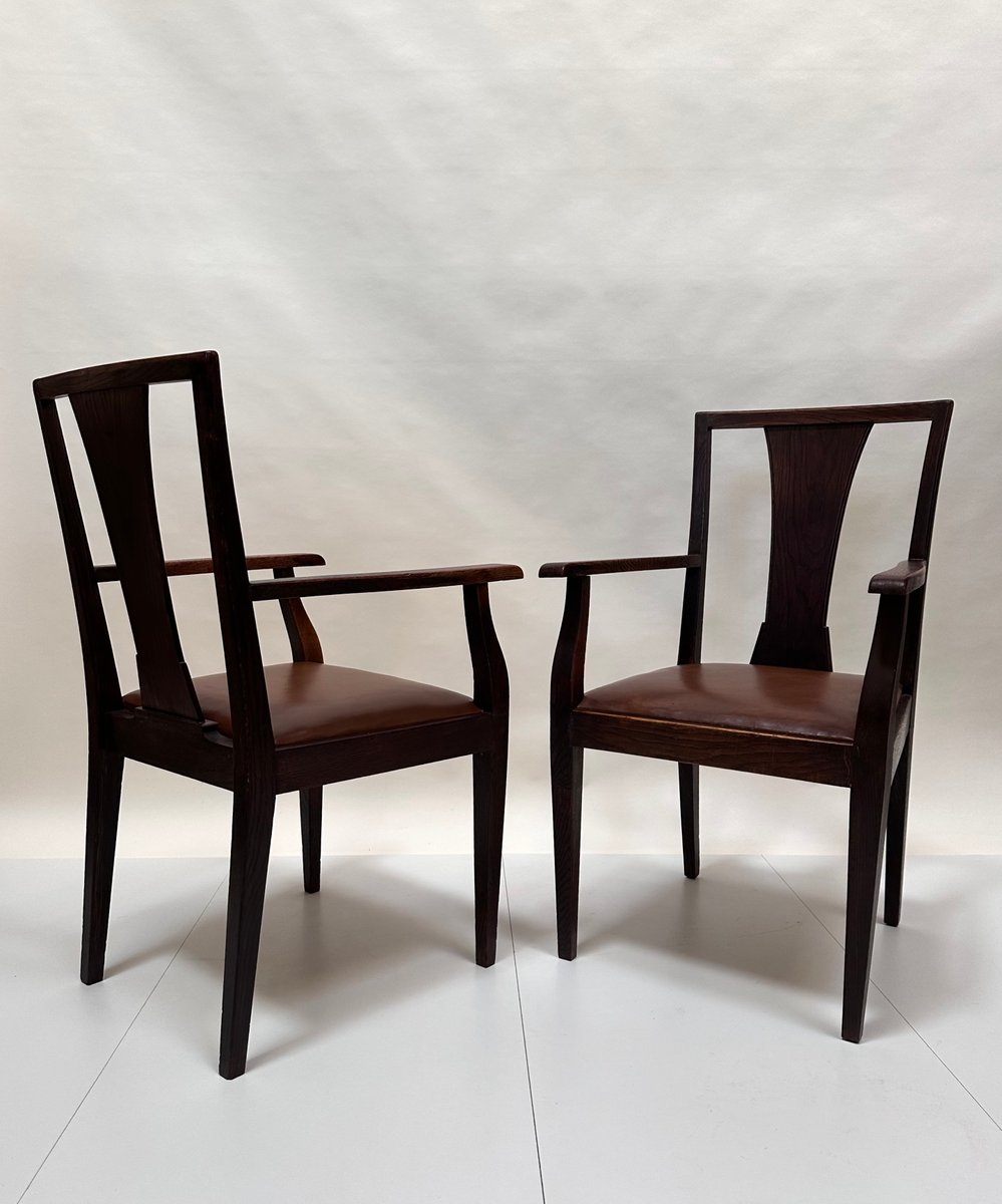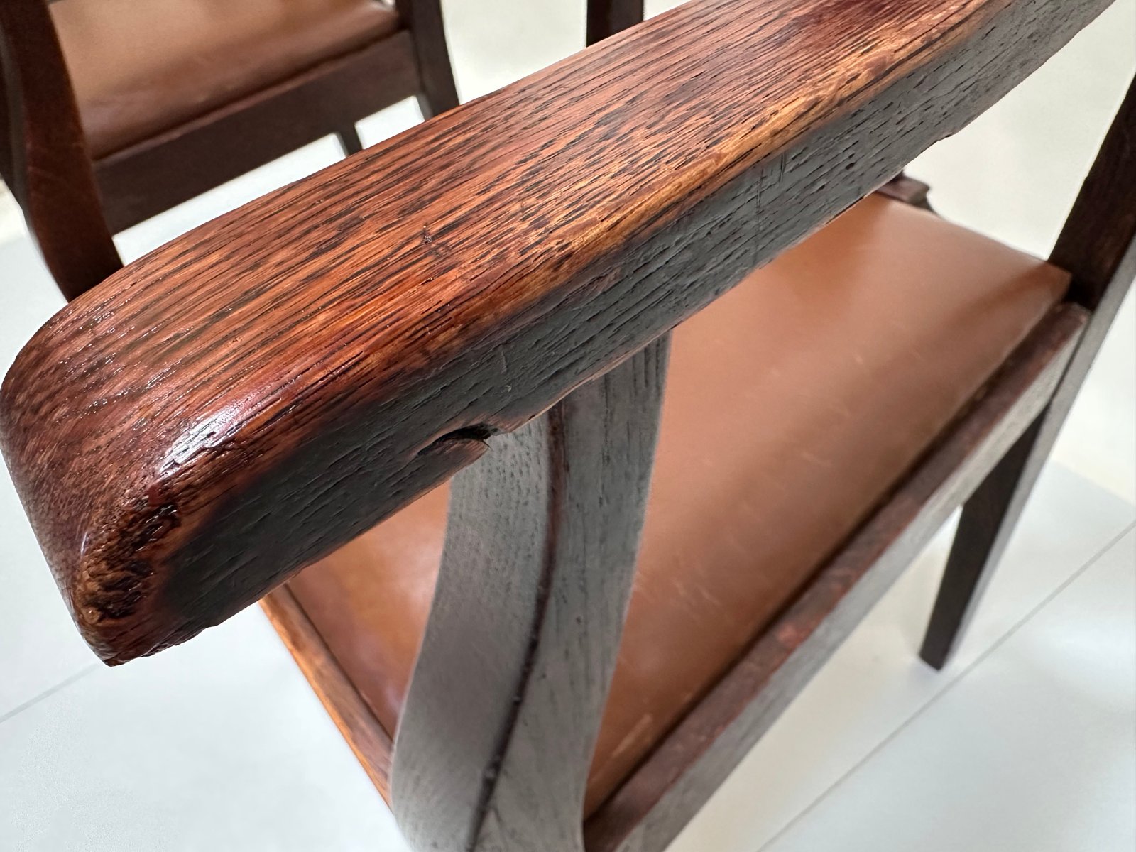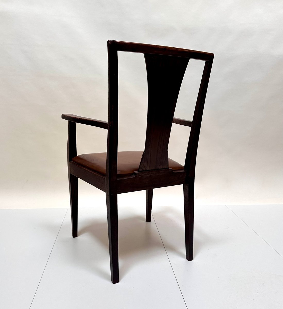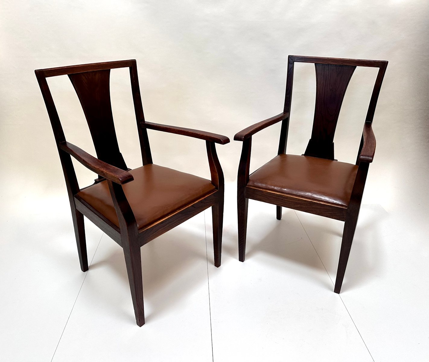 Large Antique Art Deco Stained Oak Armchairs with Leather Seats, Germany, 1920s, Set of 2