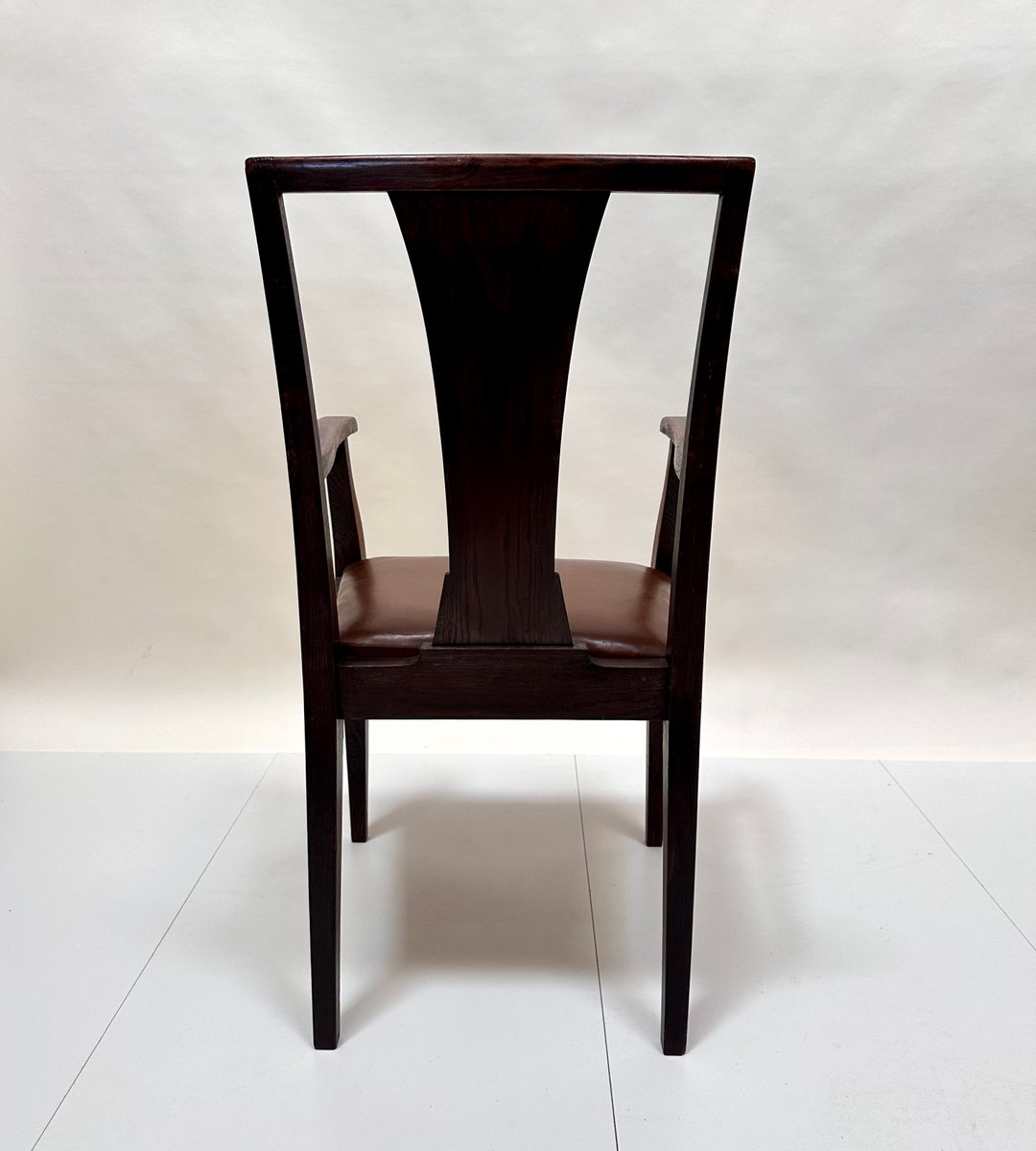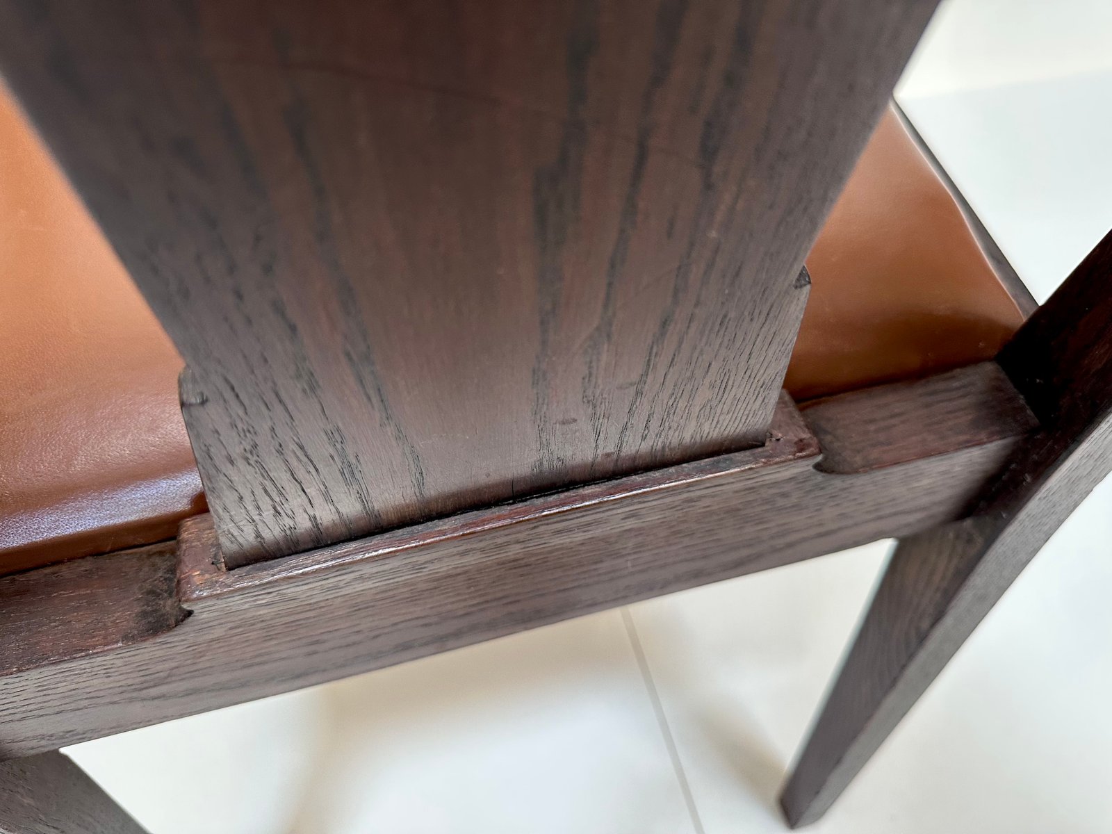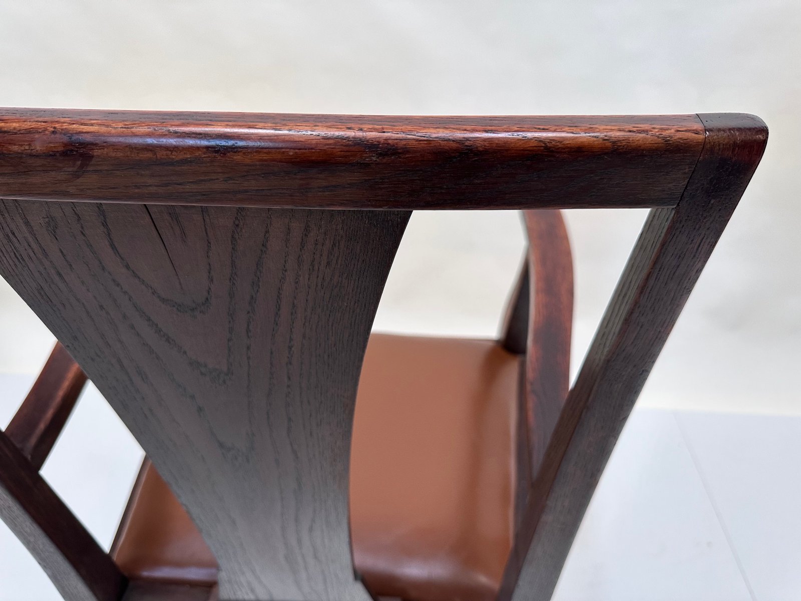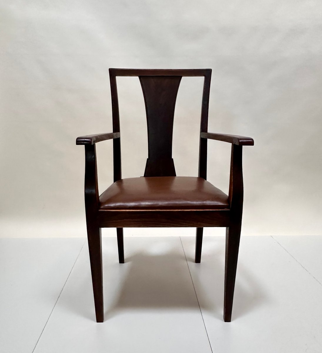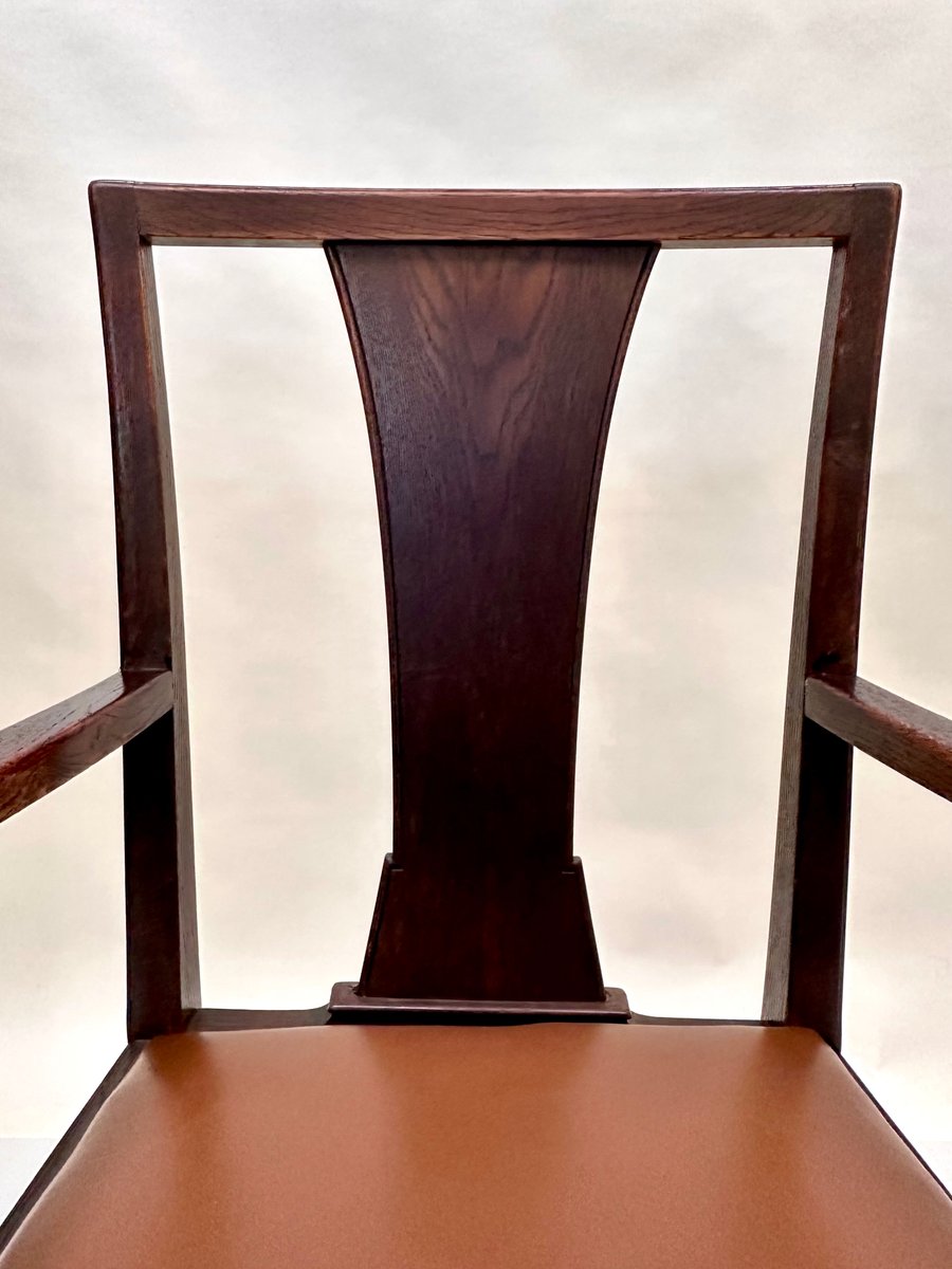 Large Antique Art Deco Stained Oak Armchairs with Leather Seats, Germany, 1920s, Set of 2