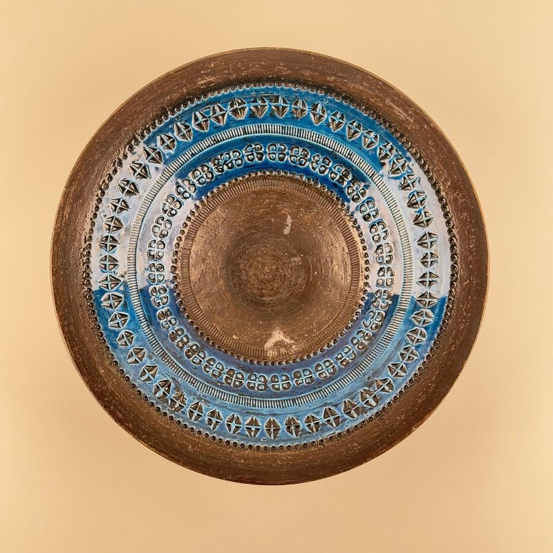 After World War II, master ceramist Aldo Londi (1911-2003) became the creative director of Bitossi Ceramiche, a position he held for more than fifty years. Londi—who was also from Montelupo—began apprenticing in ceramics at the age of eleven and brought to Bitossi a deep expertise in traditional ceramics production. He’s best known for his 1950s-era collection Rimini Blu (1955-1965). This iconic midcentury modern series contains over 150 designs, including bowls, vases, jugs and animal figurines, all glazed in a vibrant blue hue and embossed with abstract motifs and shapes. Londi created the first piece glazed in Persiano Blue, Ball Vase, in 1955. Shortly after in 1959, he began to create more pieces in the proprietary chromatic glaze. The collection holds historical importance because it helped to bring handcrafted and expressive works into the modernist design conversation in Italy. Though the blue was not the only color Bitossi favored, it has become closely associated with the brand’s identity. The collection is still in production today and widely collected by ceramics enthusiasts.