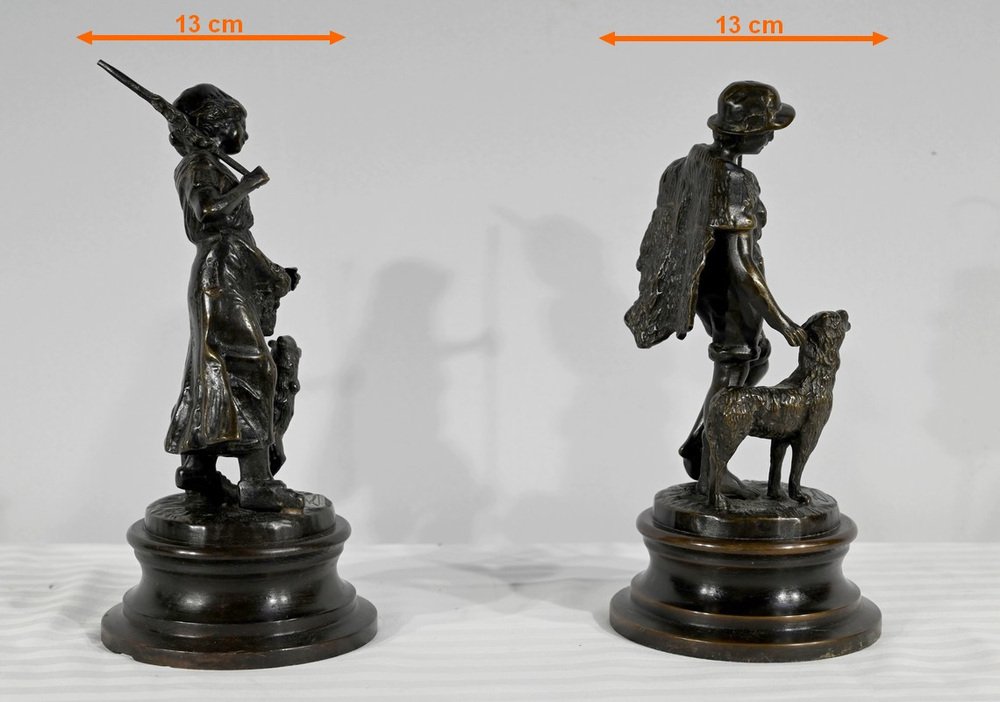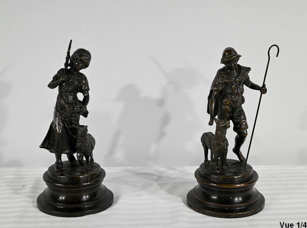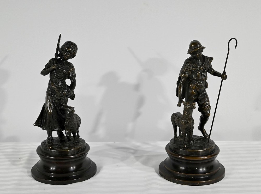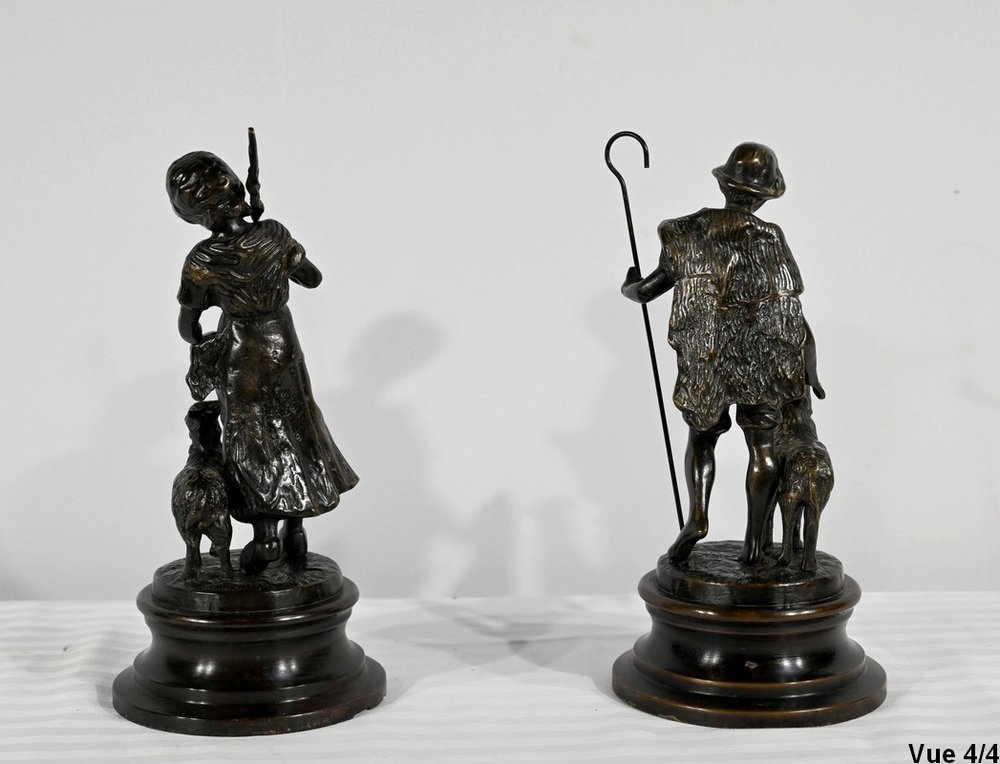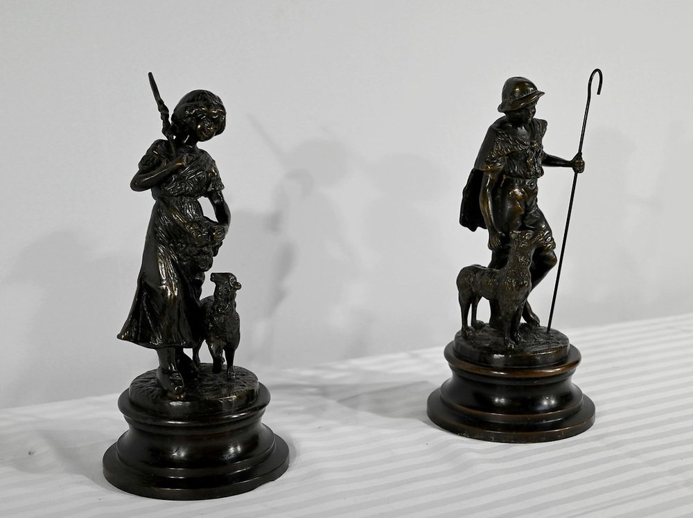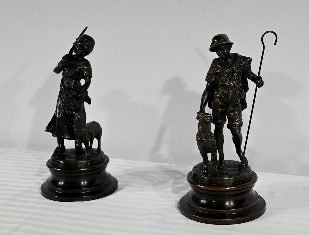 Laurini after L & F. Moreau, Le Berger et la Bergère, Early 1900s, Bronzes, Set of 2