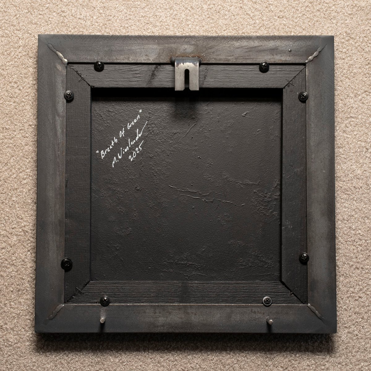 Mats Wieslander, Breath of Green, 2025, Acrylic and Ink on Oxidized Sheet Metal