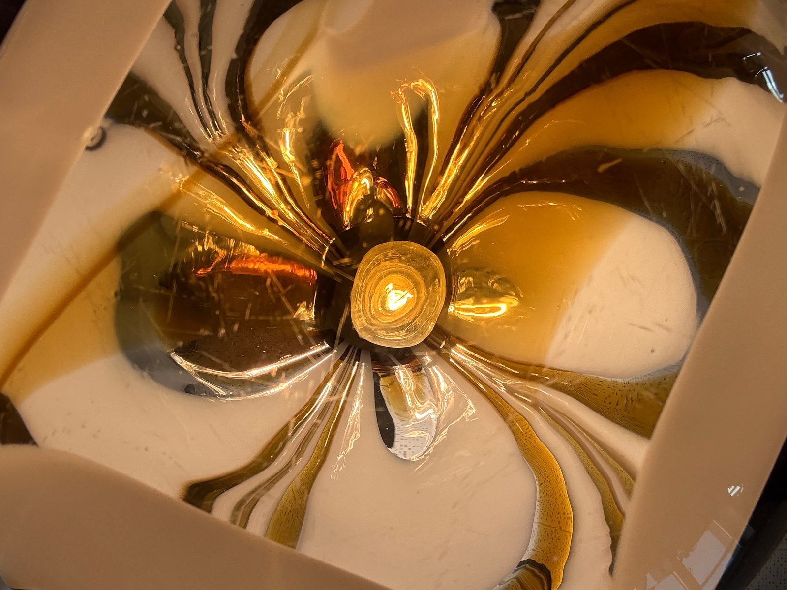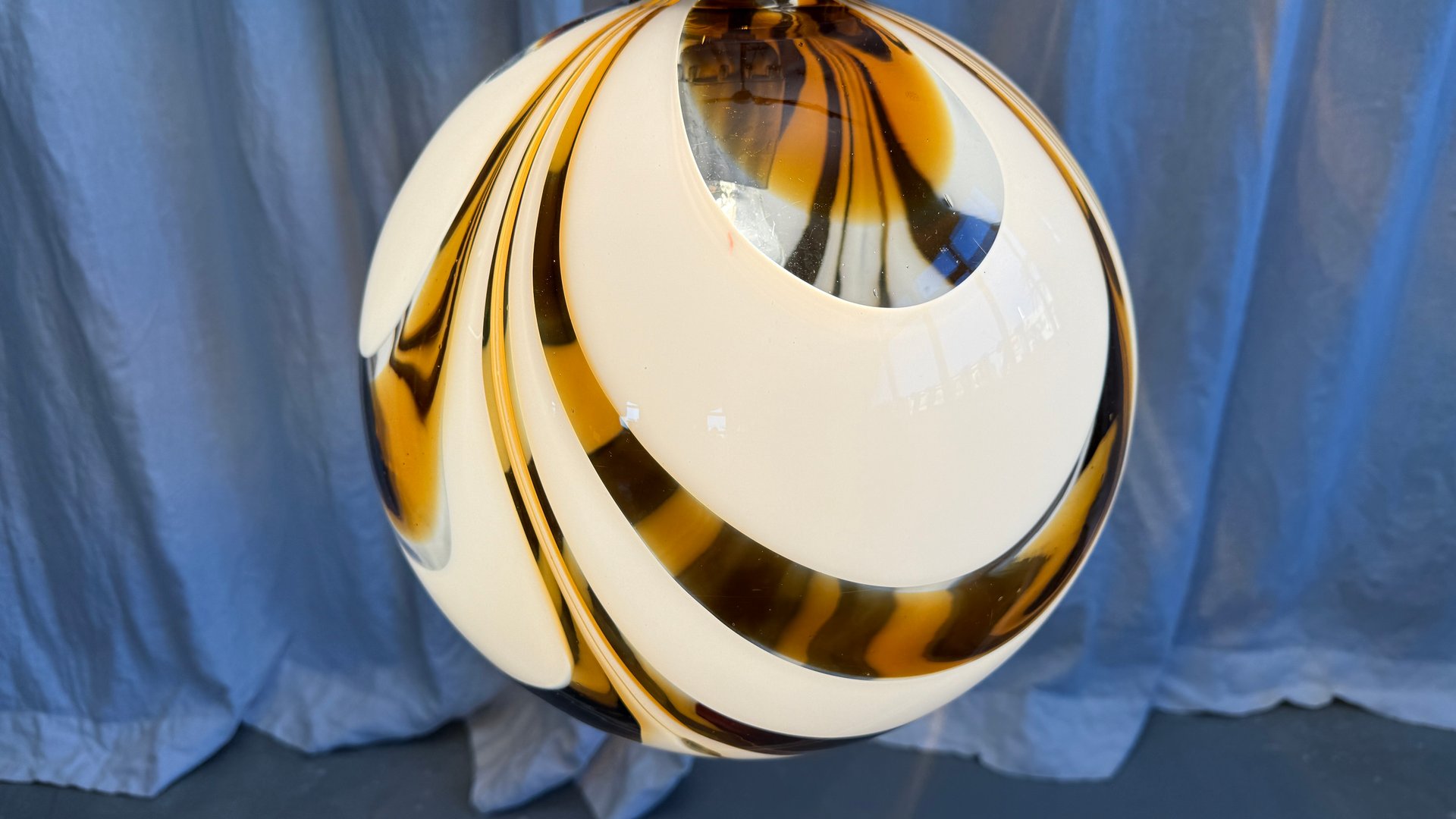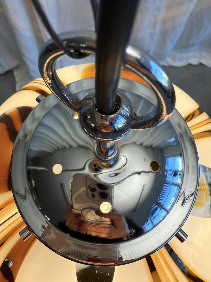 Mid-Century Italian Amber and White Swirl Murano Glass Pendant with Chrome Suspension attributed to Mazzega, 1970s