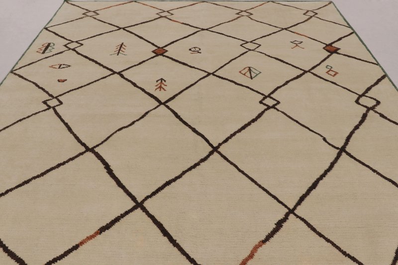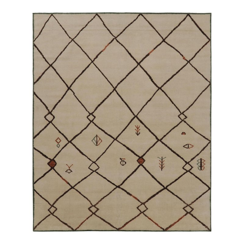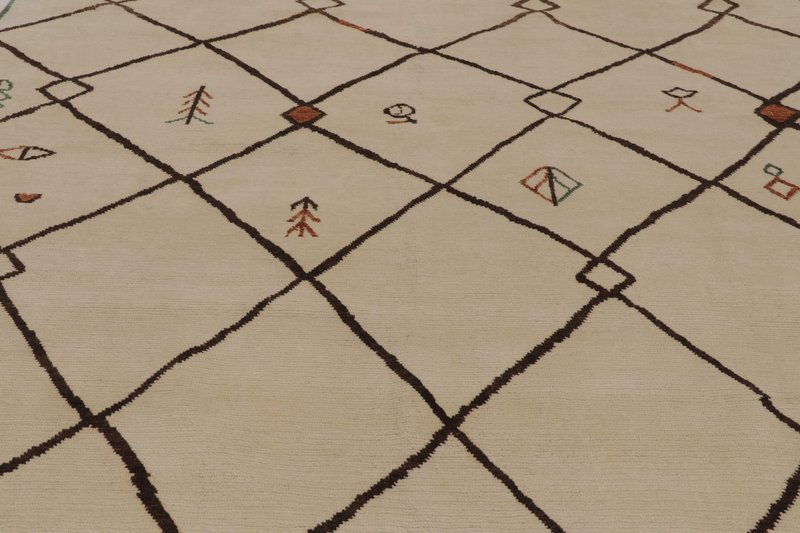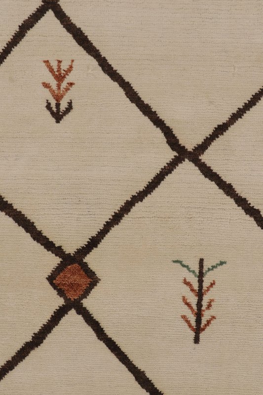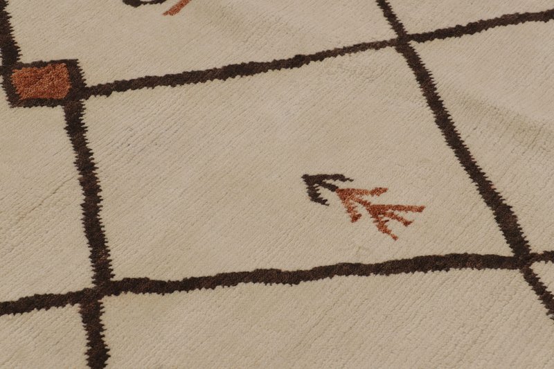 Moroccan-Inspired Rug in Ivory and Brown with Tribal Lattice by Rug&Kilim