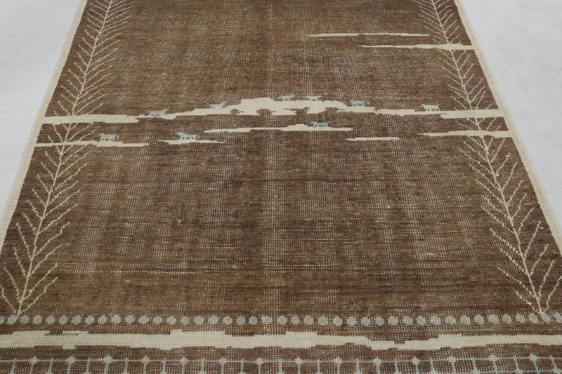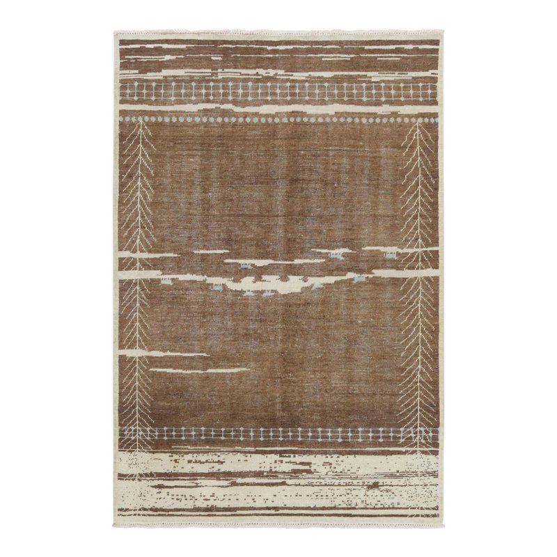 Moroccan-Inspired Rug in Rich Brown and Cream Primitivist Geometry by Rug&Kilim