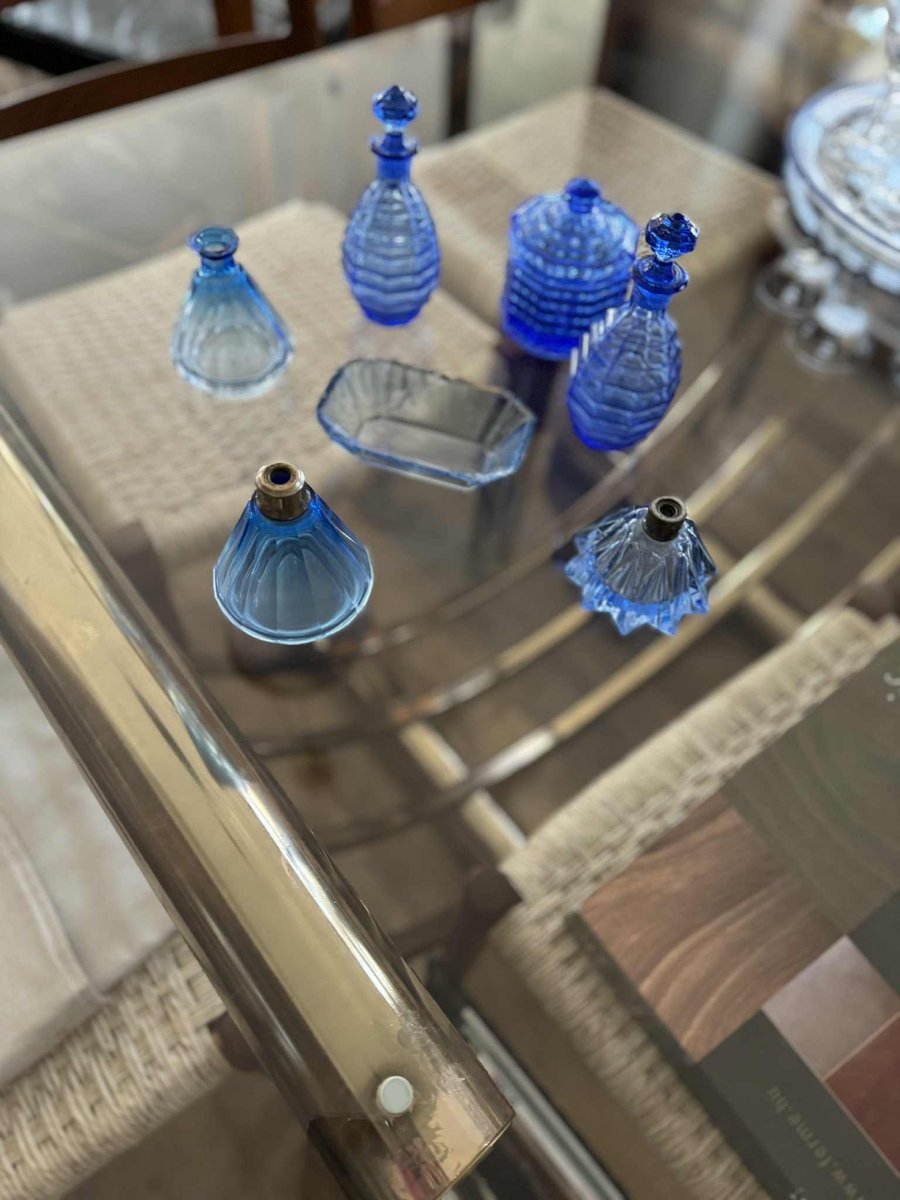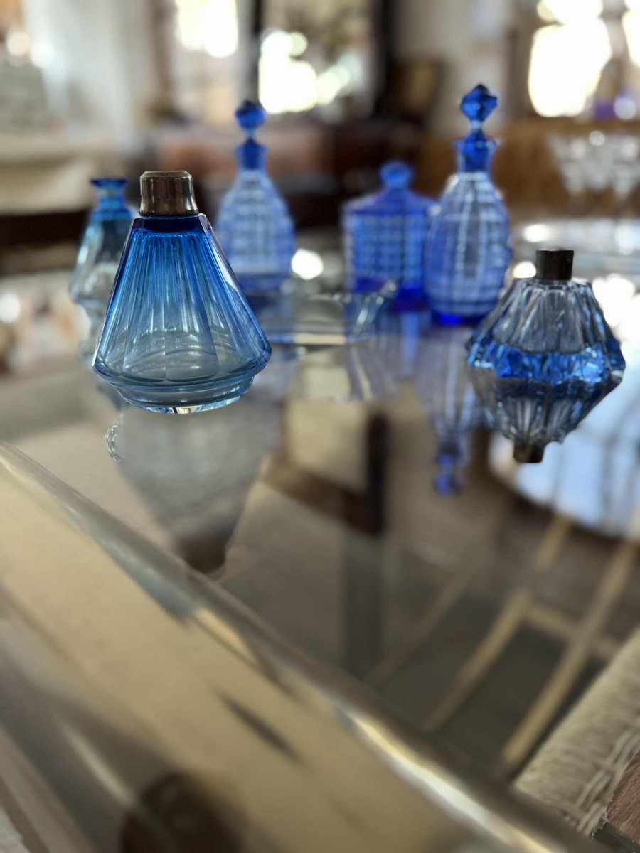 Pressed Glass Perfume Bottles and Powder Jar, 1940s, Set of 7