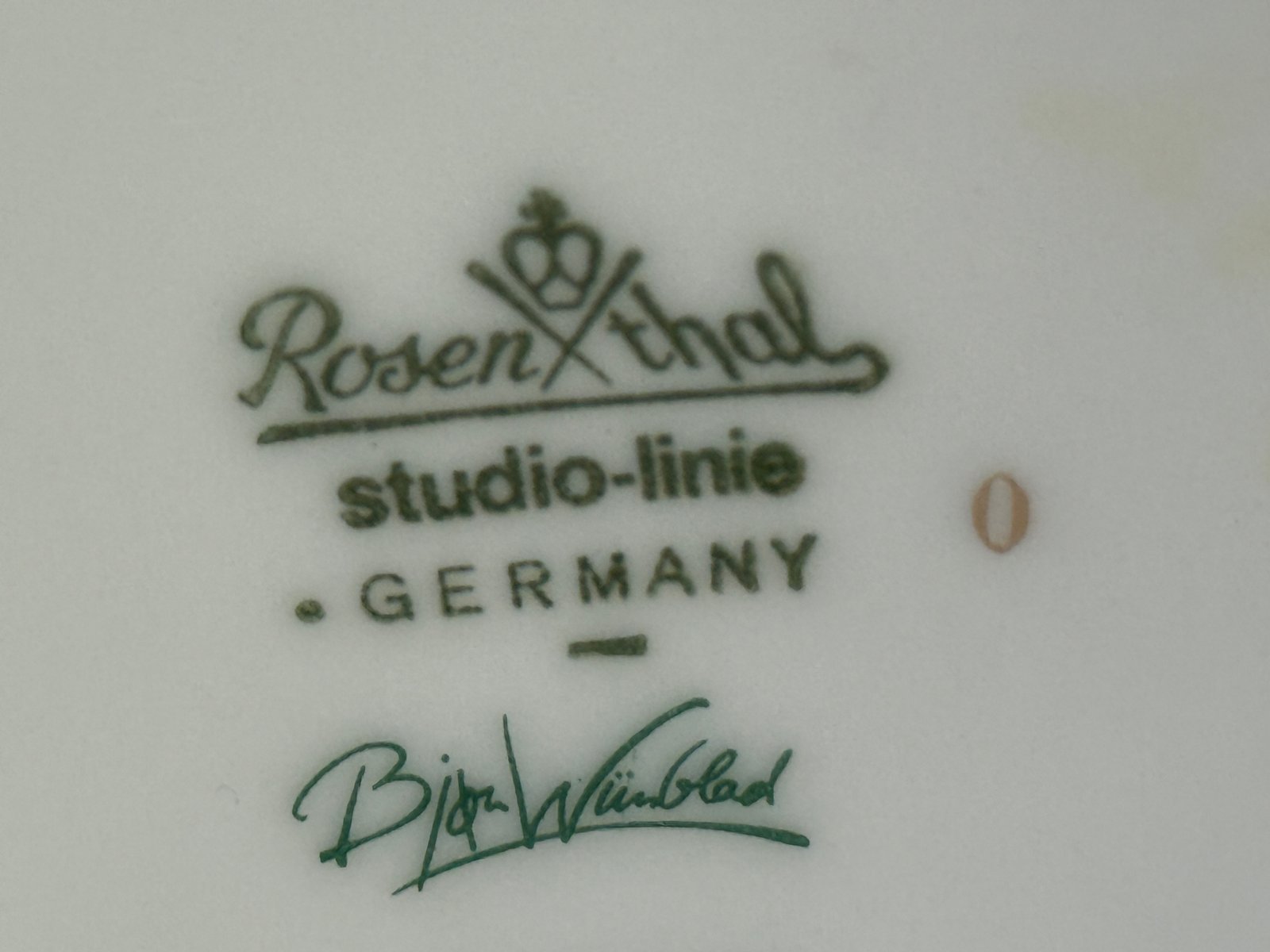 German porcelain manufactory Rosenthal was originally founded as a ceramics-painting studio by Philipp Rosenthal Sr. (1855-1937) in 1879 at Schloss Erkersreuth in Bavaria, near the Czech border. Its first highly popular product was an ashtray inscribed with the words “Resting place for lit cigars.” In 1890, the company moved to the neighboring hamlet of Selb and, a year later, began to manufacture its own porcelain, since white porcelain was, at that time, in short supply. Rosenthal’s first complete table service was called Empire; it was exhibited along with other lines at Paris’s Exposition Universelle in 1900.