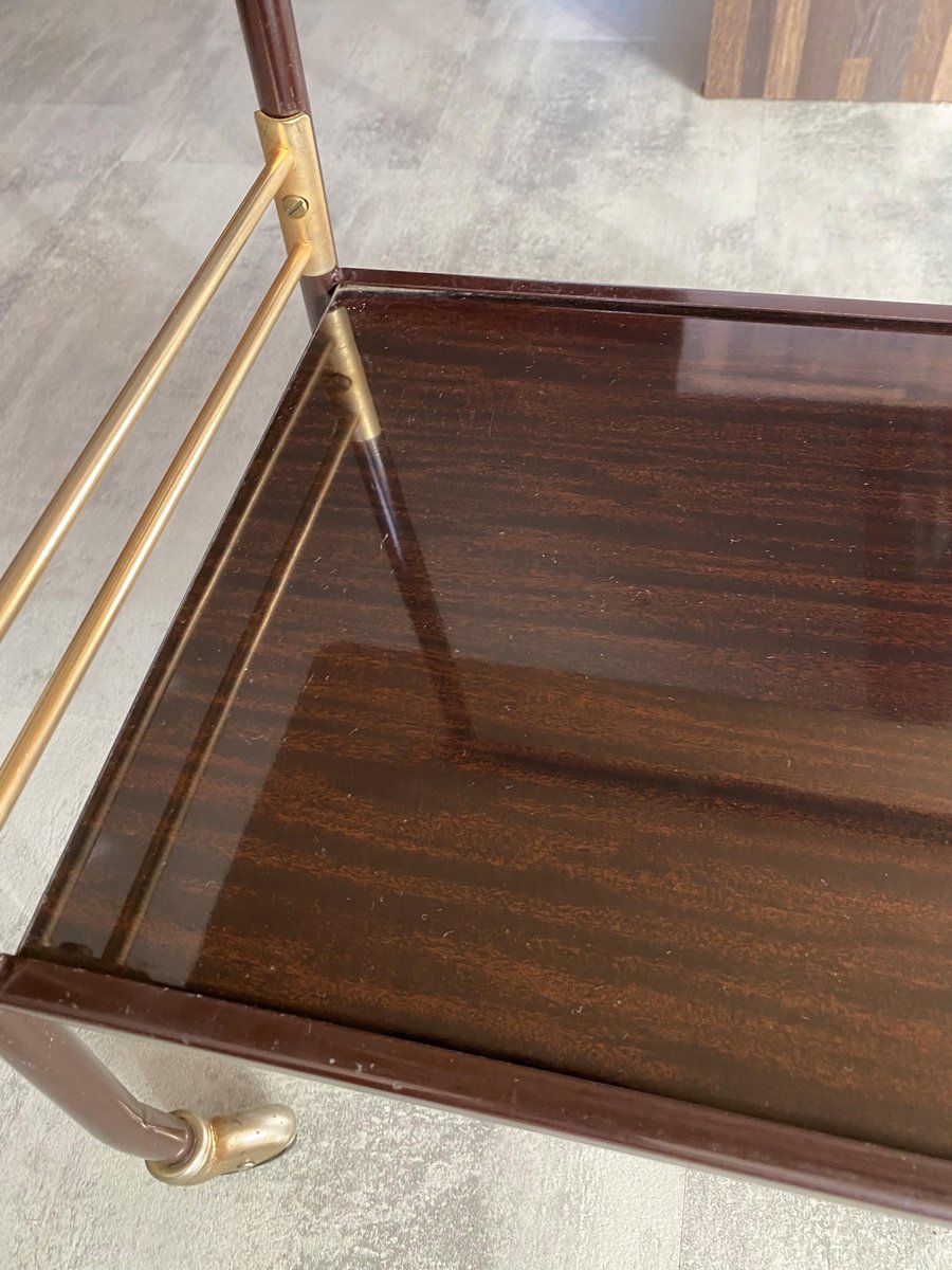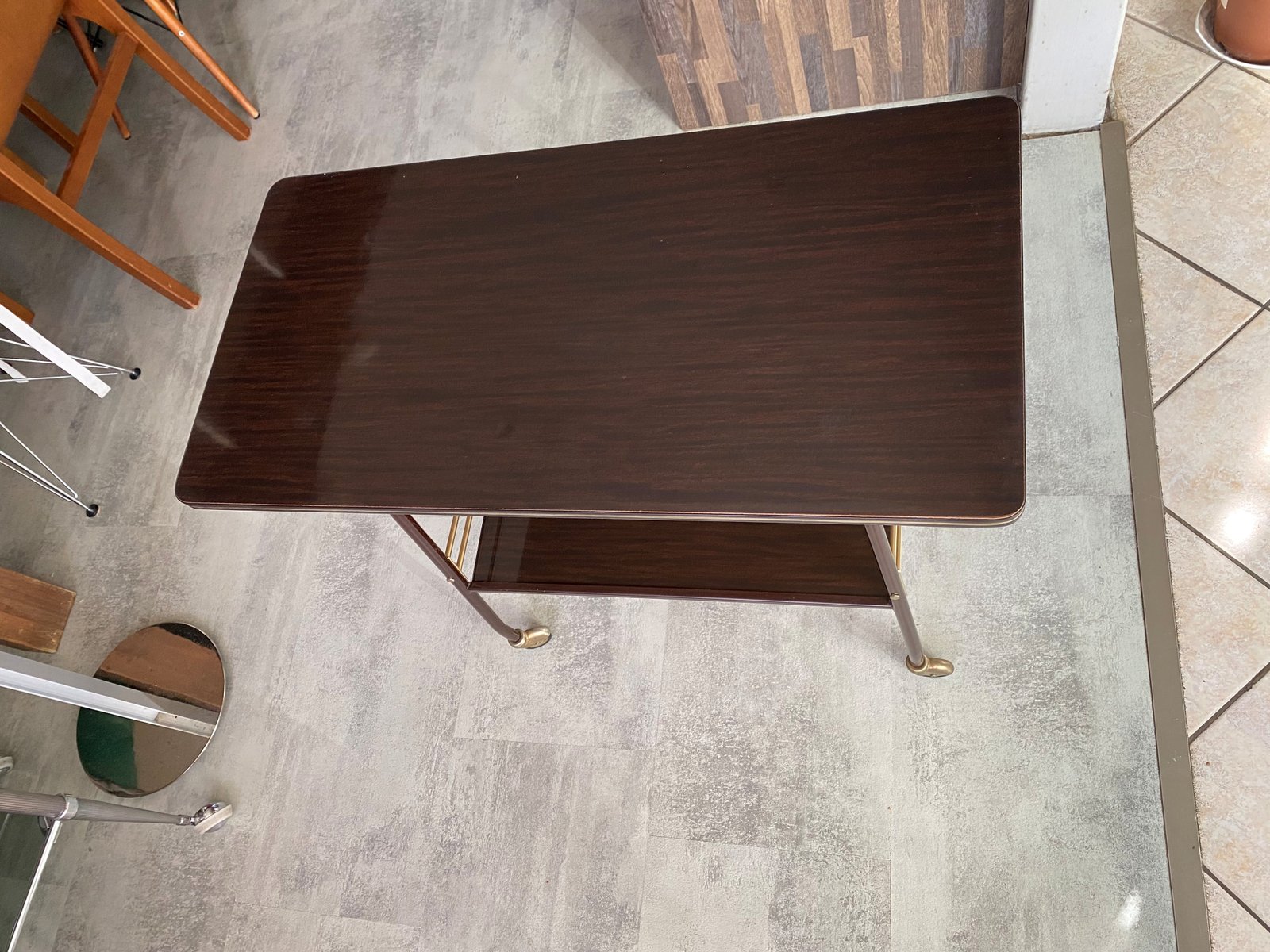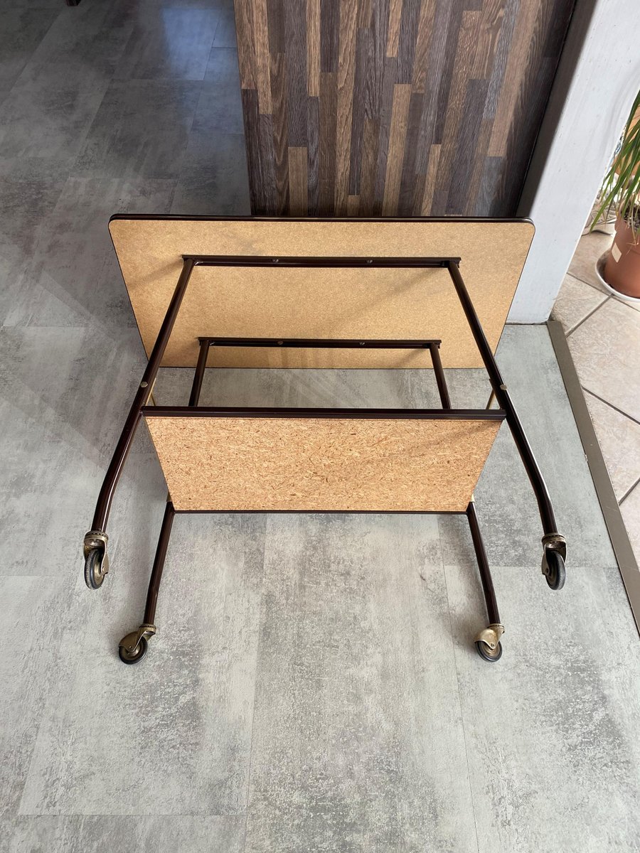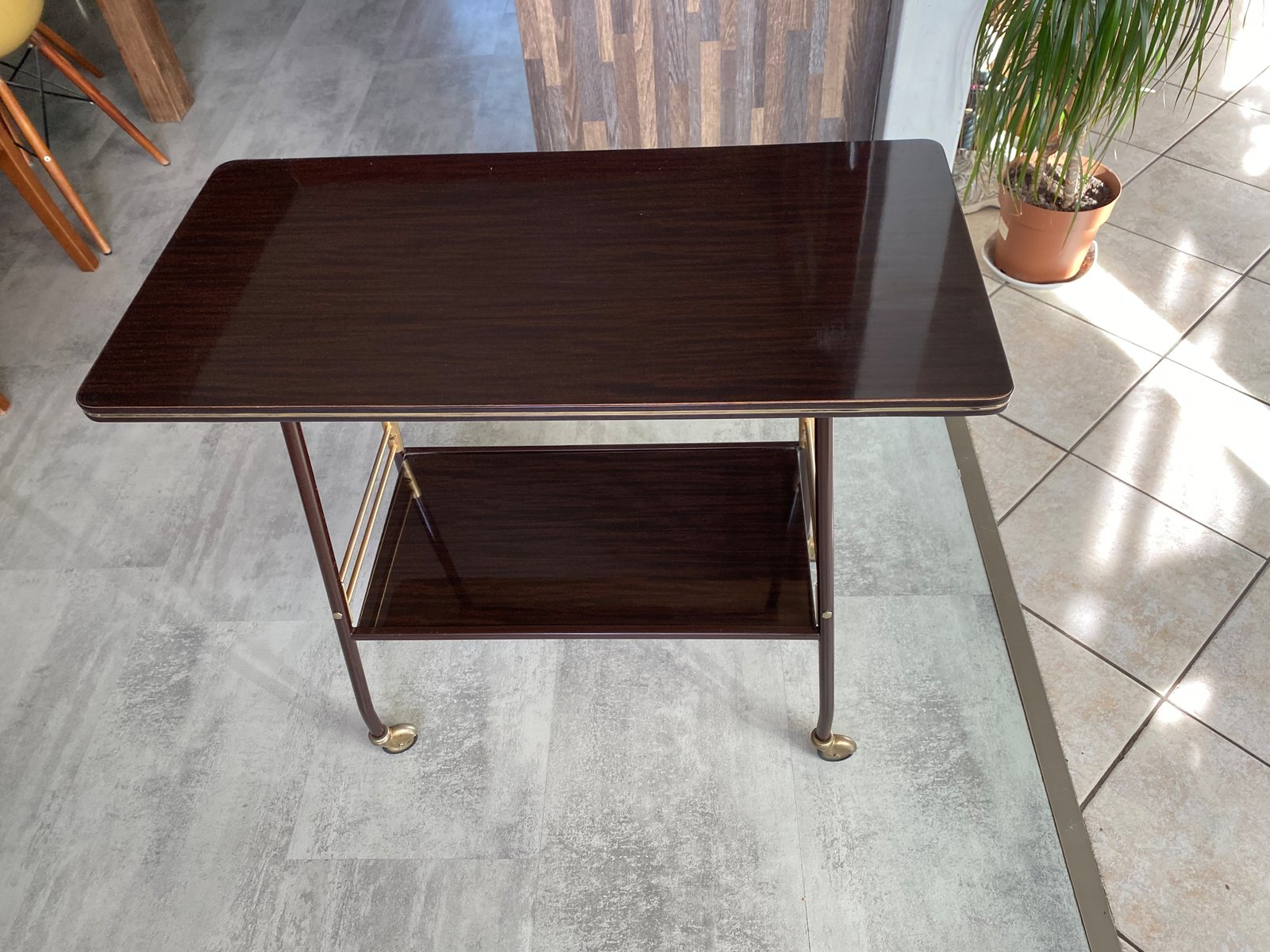 TV Stand on Casters with Brown Formica Shelves, 1960s