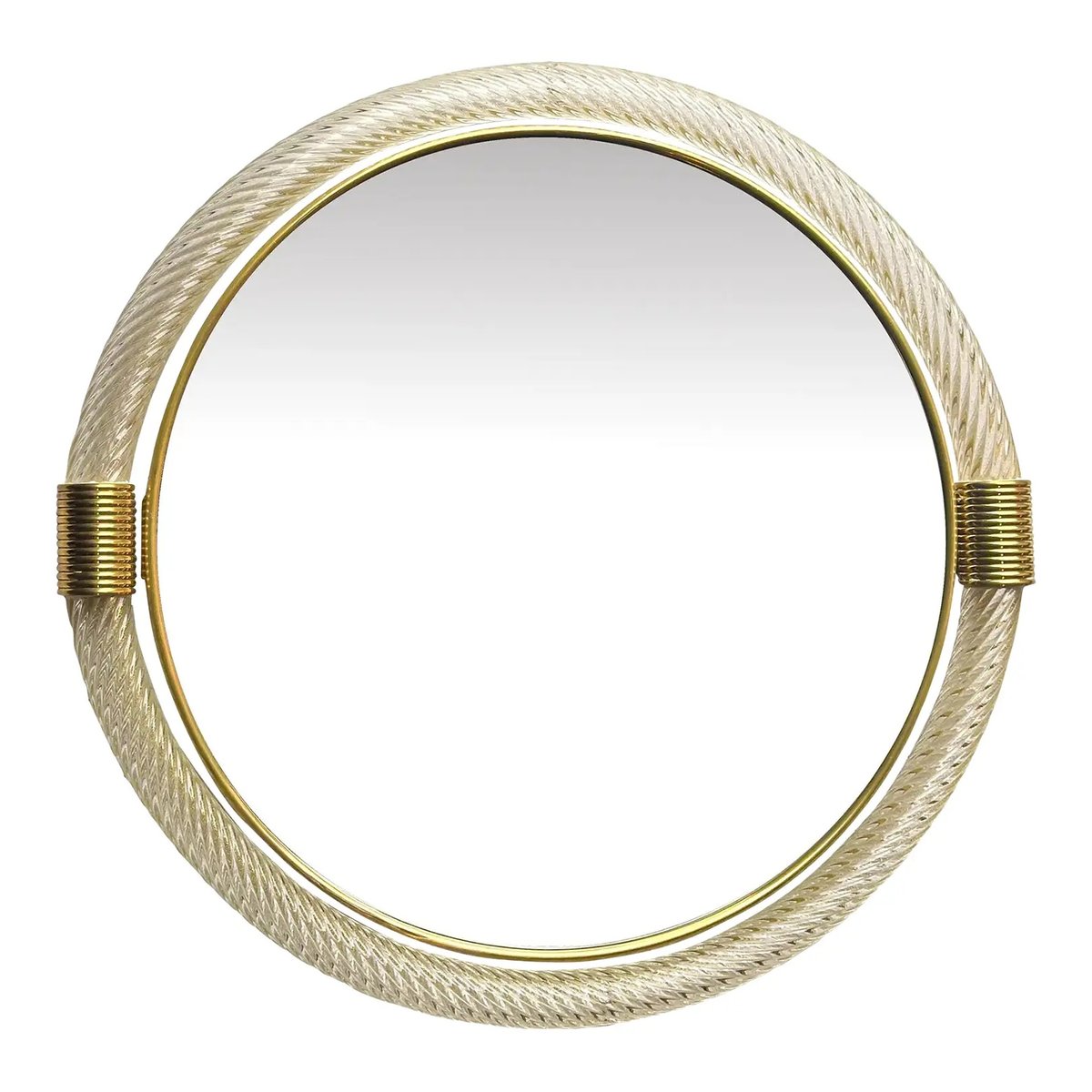 Venetian Roundtorgiglione-Torchon Murano Glass Wall Mirror by Simoeng