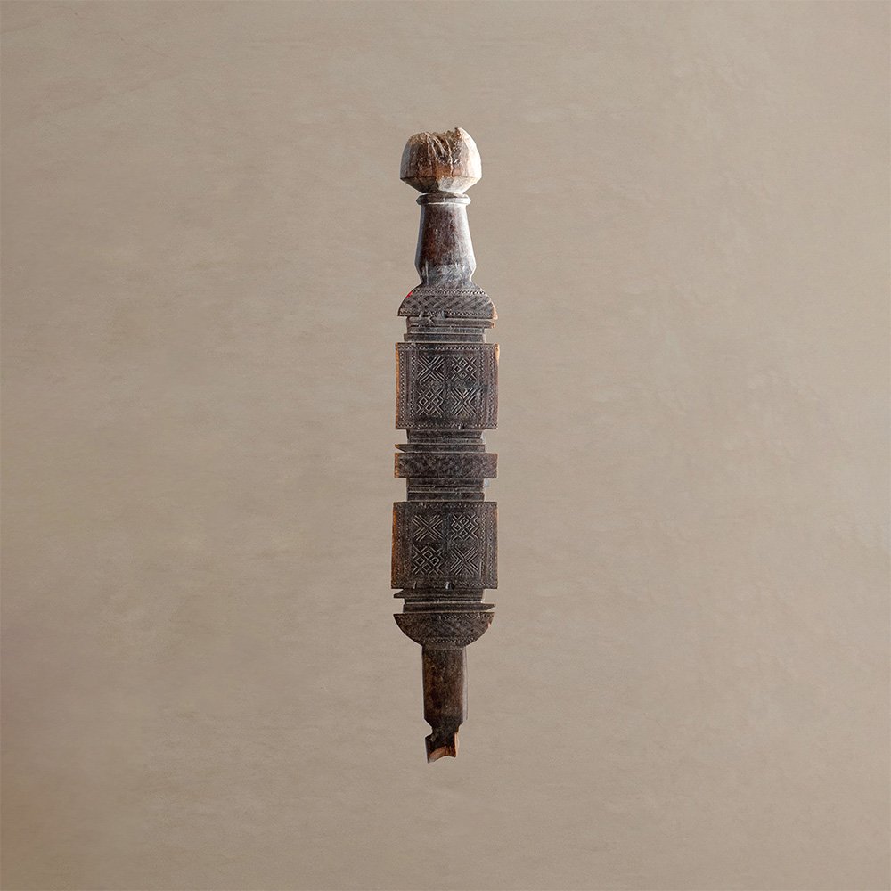 Vintage Berber Hand-Carved Wooden Tent Peg Wall Sculpture