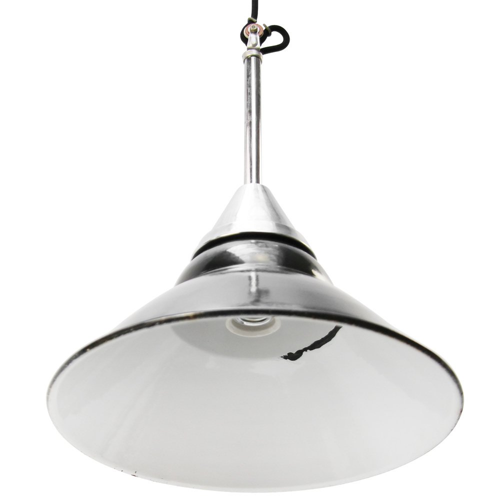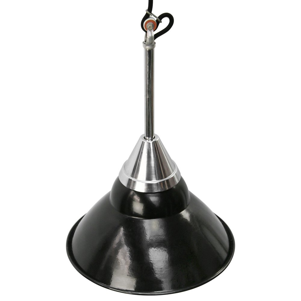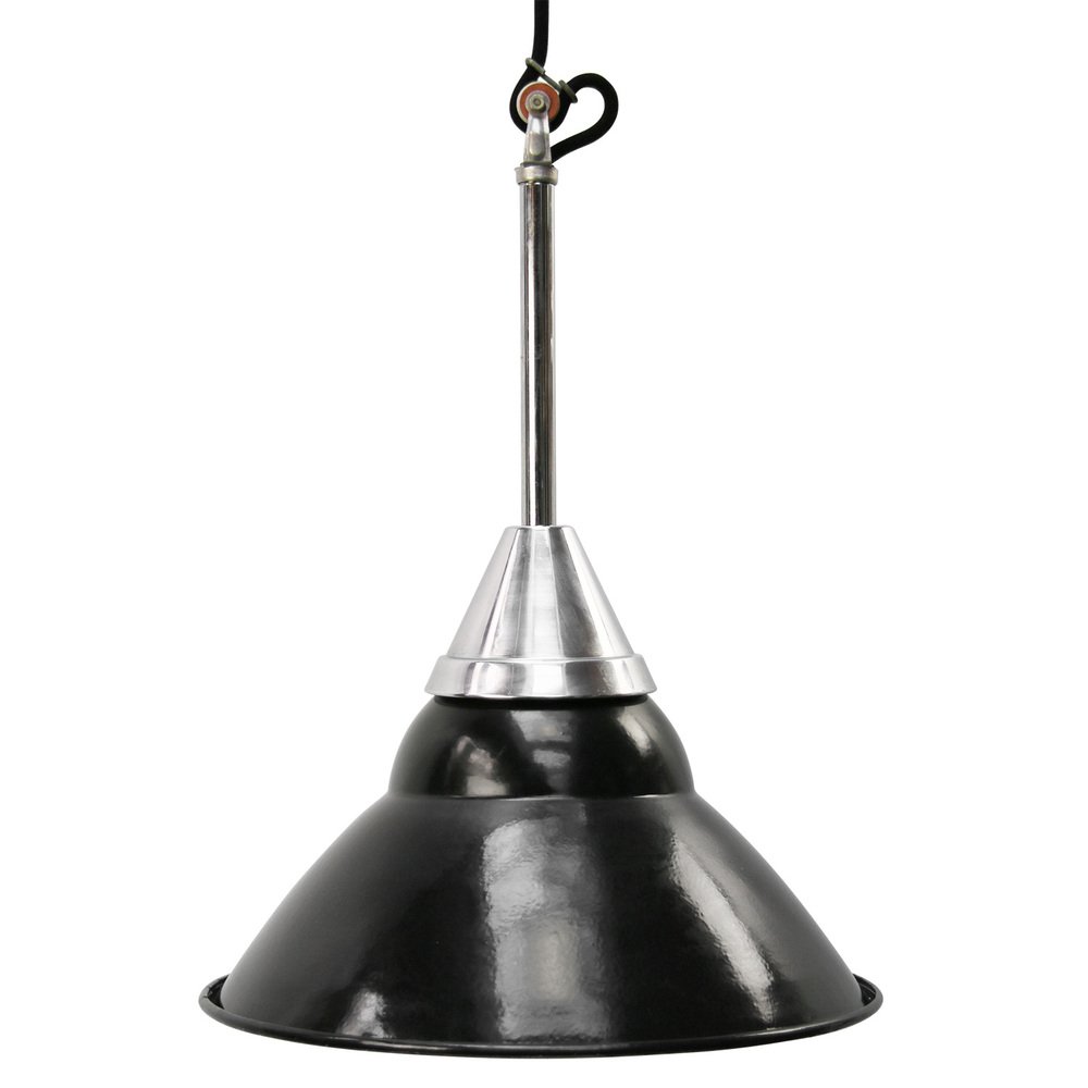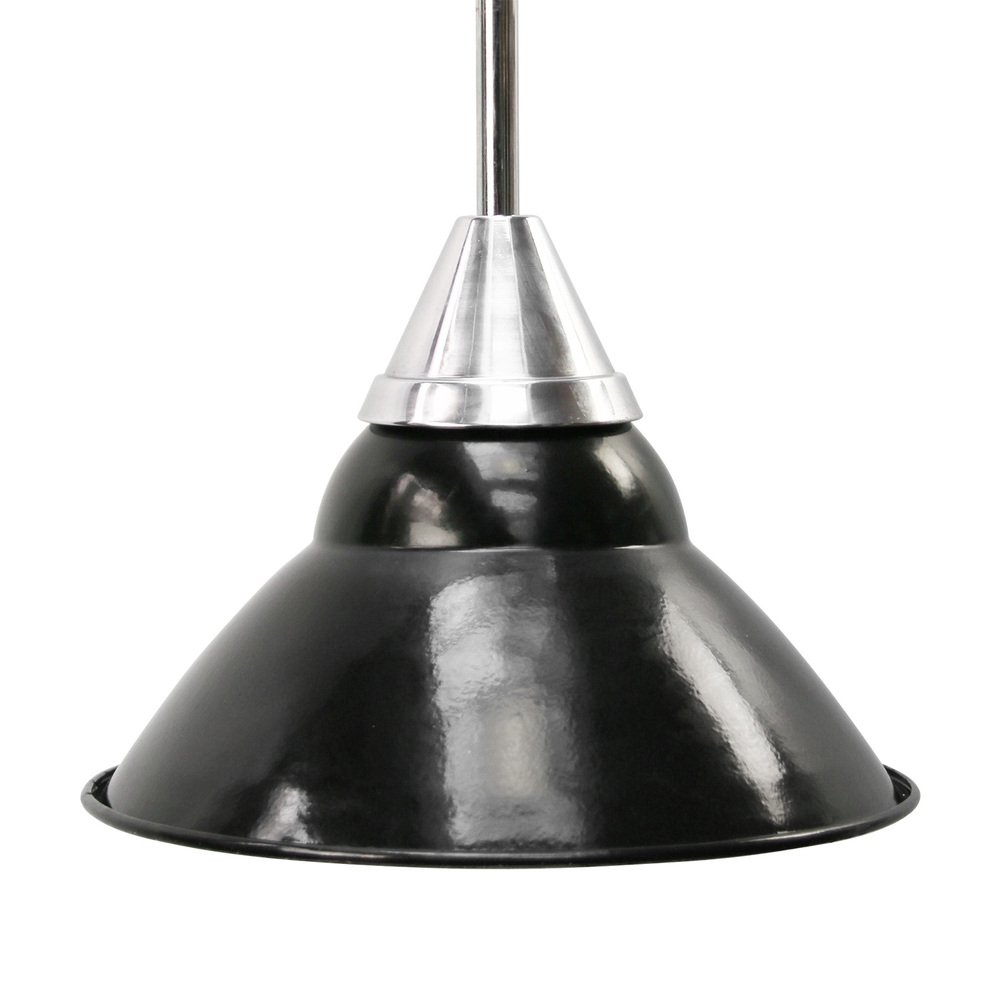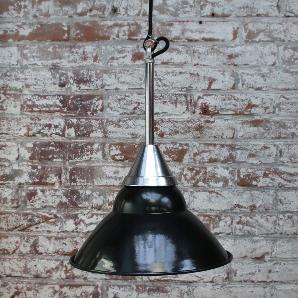 Vintage French Industrial Black Enamel and Chrome Pendant Light from Gal, France