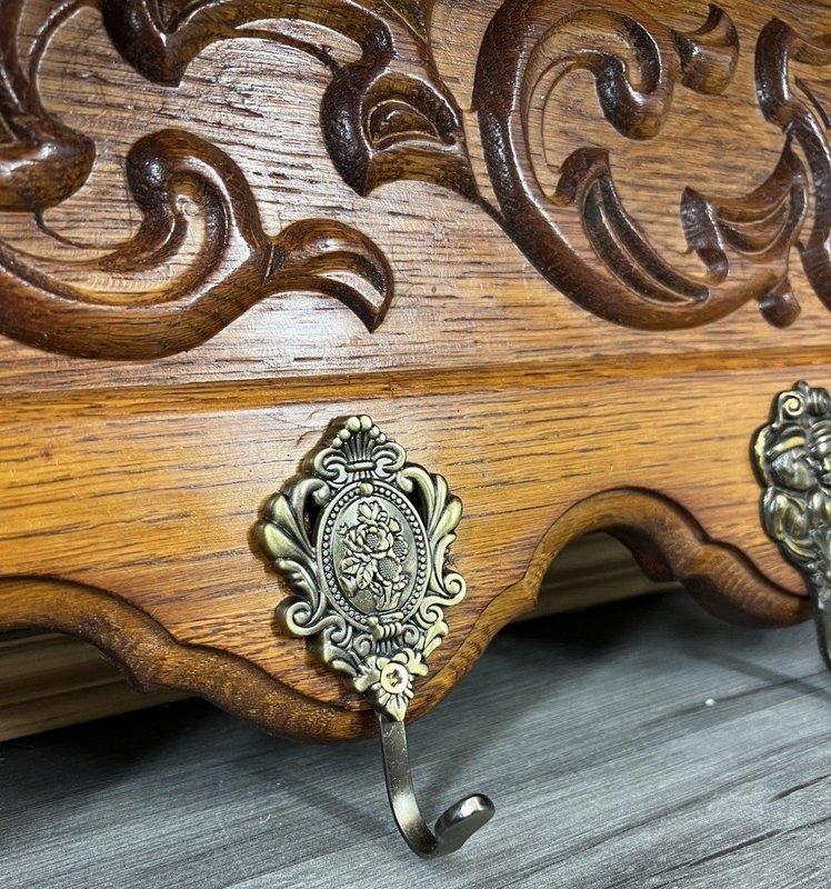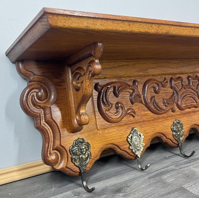 Vintage French Oak 6-Hook Wall Coat Rack