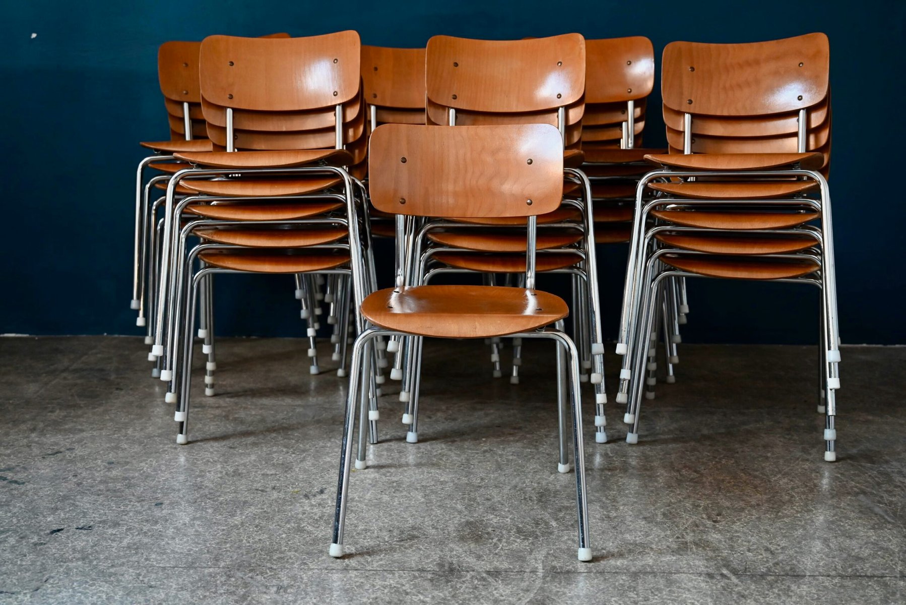 Vintage Industrial Chrome Tubular Chairs, Set of 20