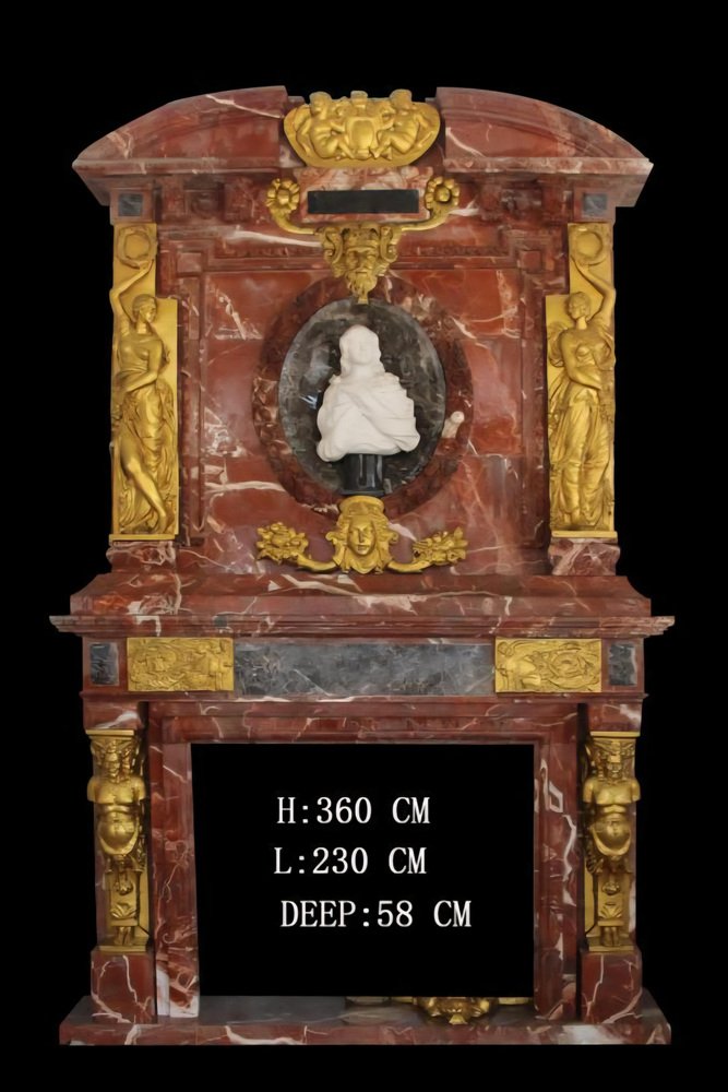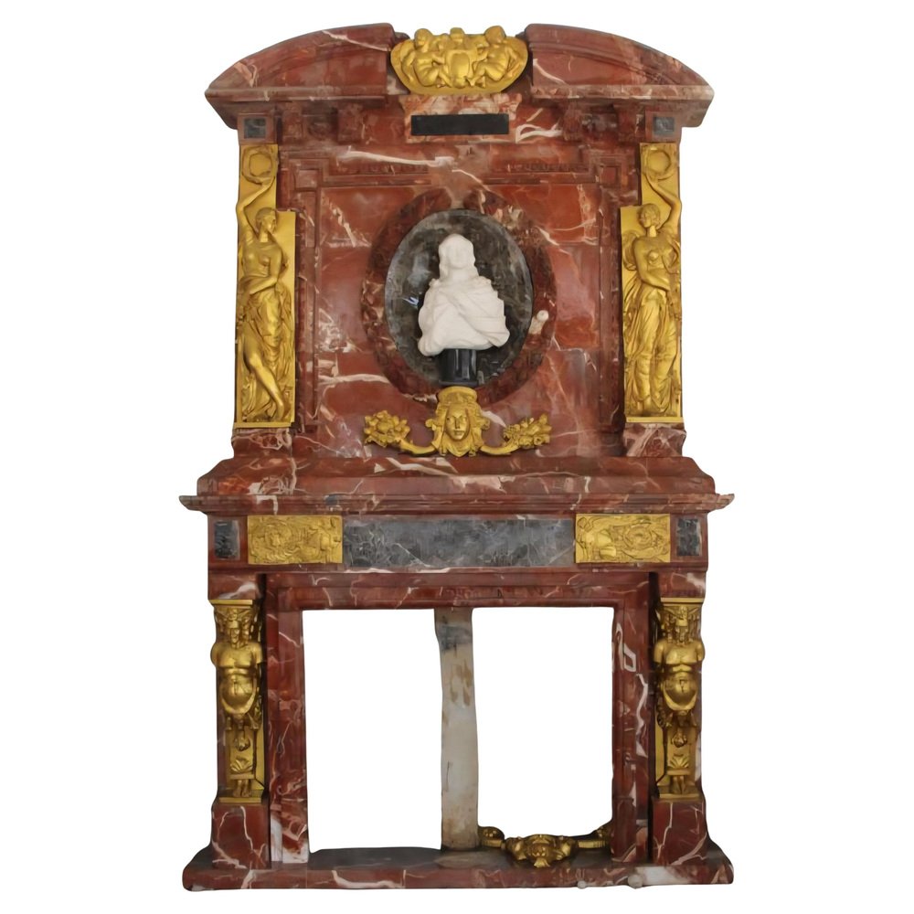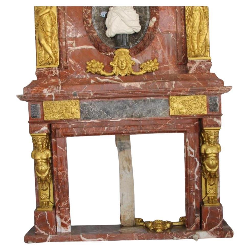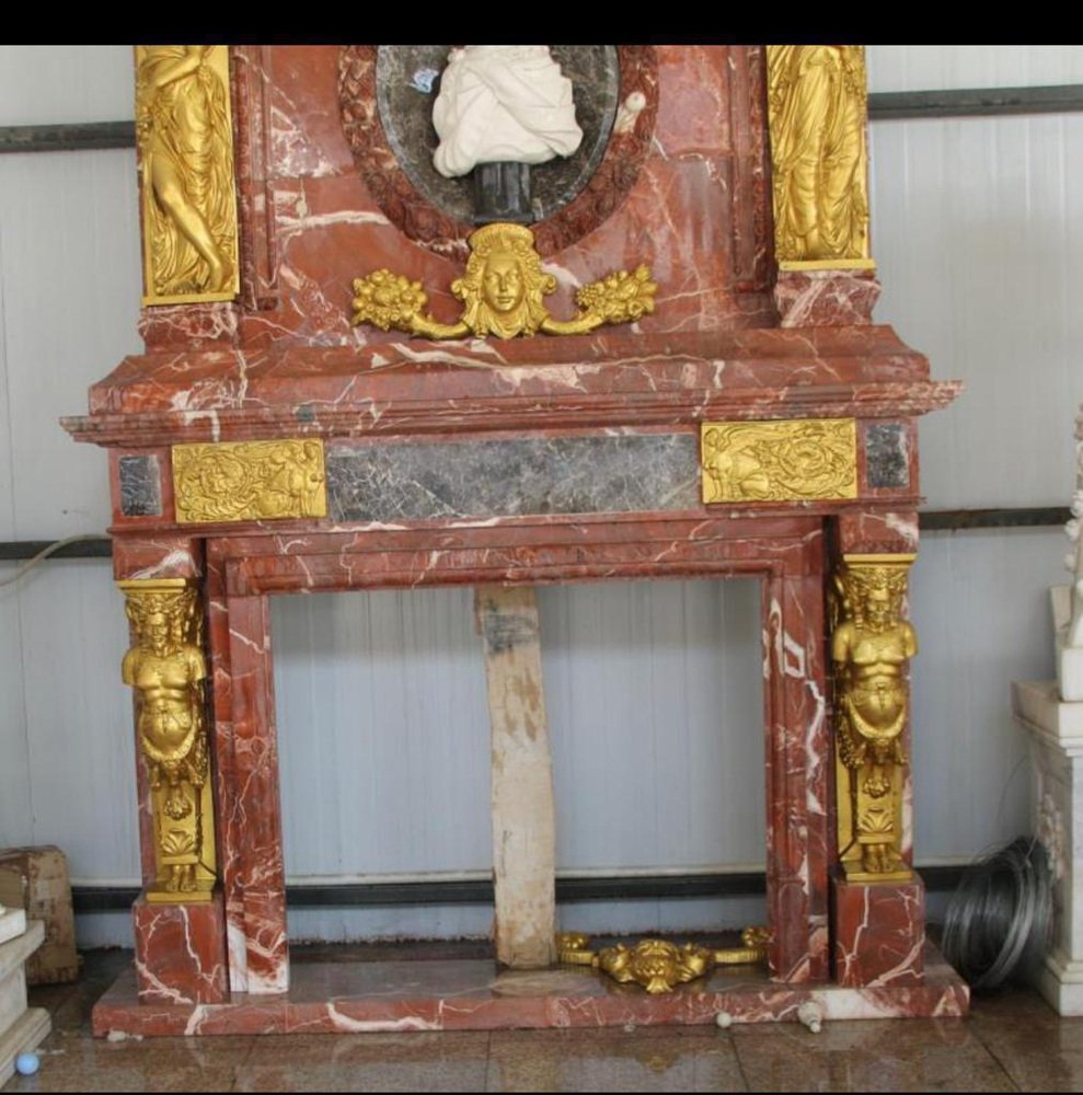 Vintage Italian Marble Fireplace with Bronze Ornaments, 1980