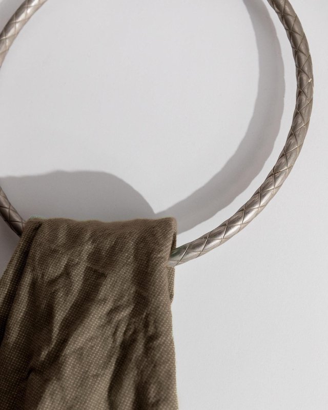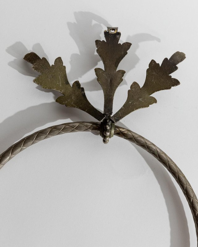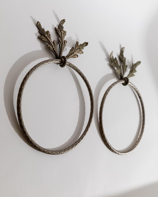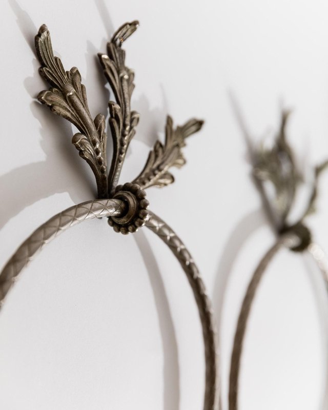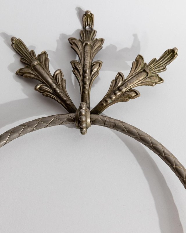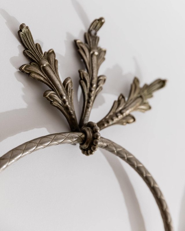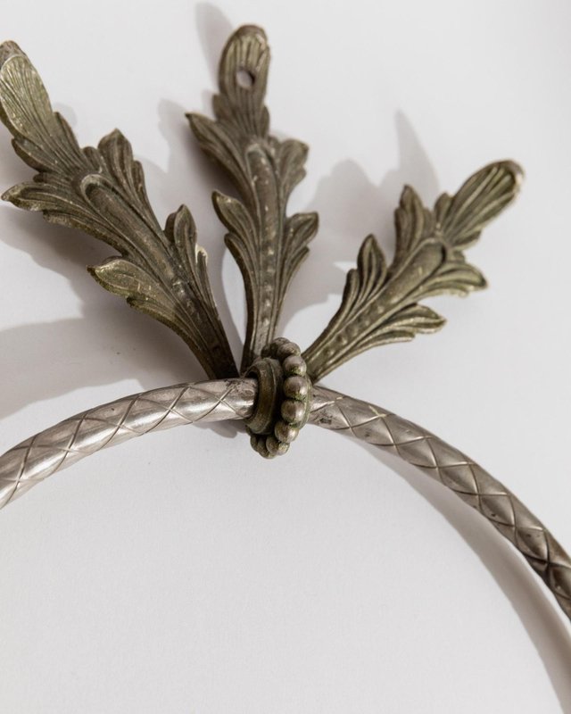 Vintage Oak Leaf Relief Hand Towel Rings in Metal, 1930s, Set of 2