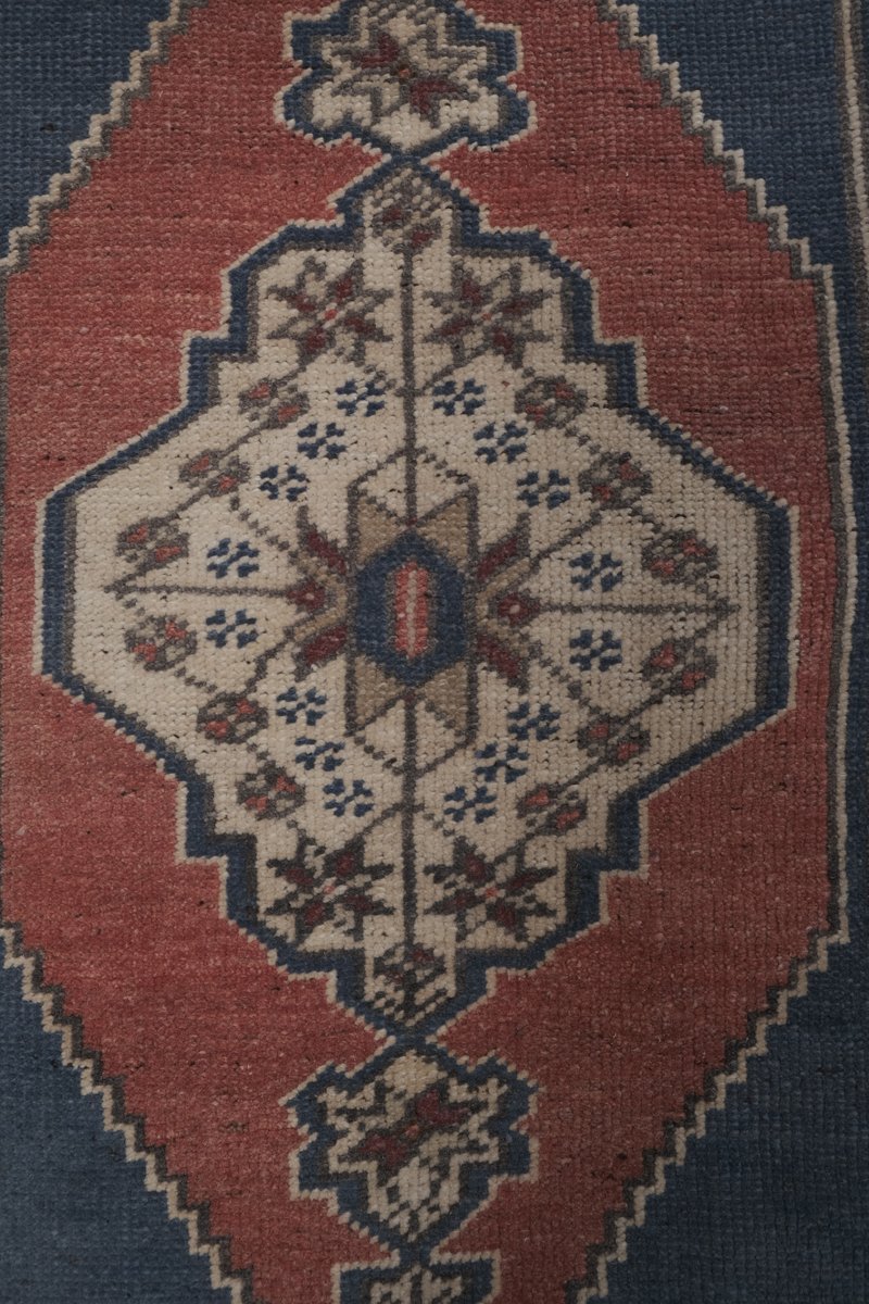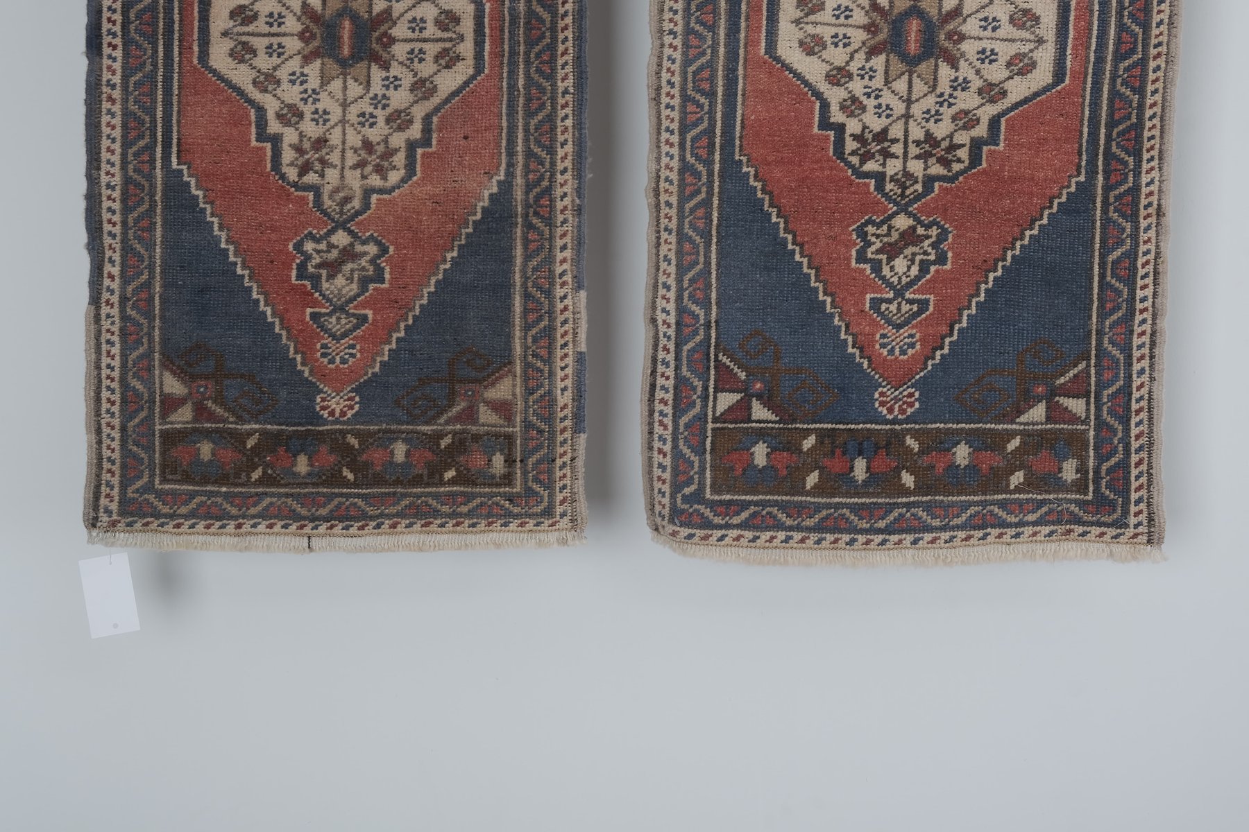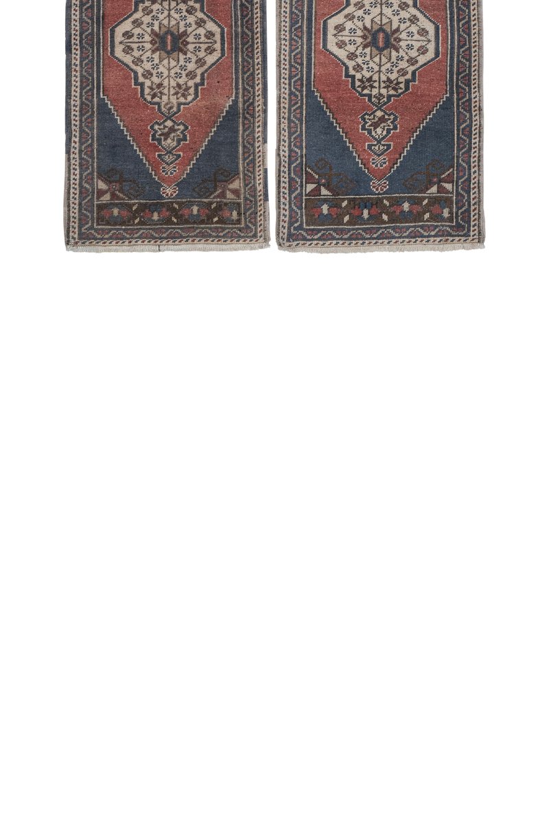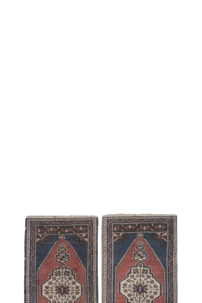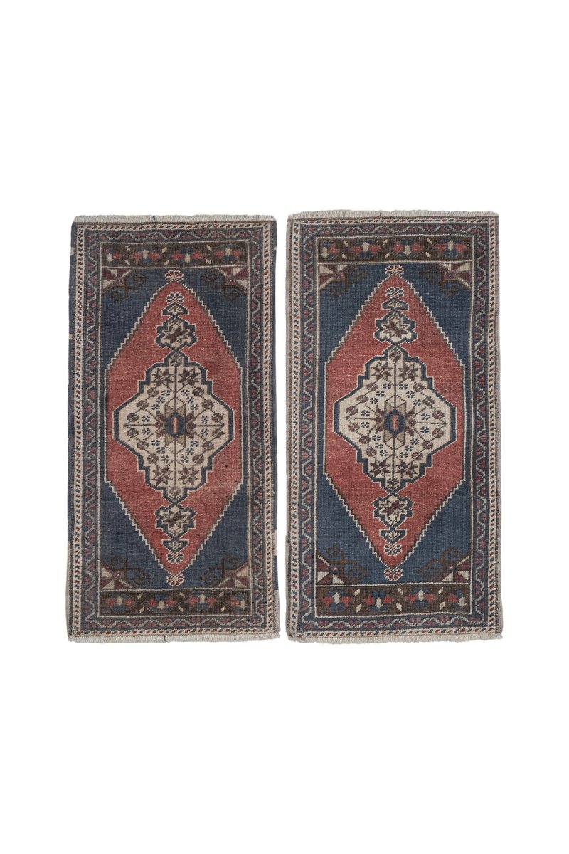 Vintage Turkish Red Handmade Geometric Rug, Set of 2